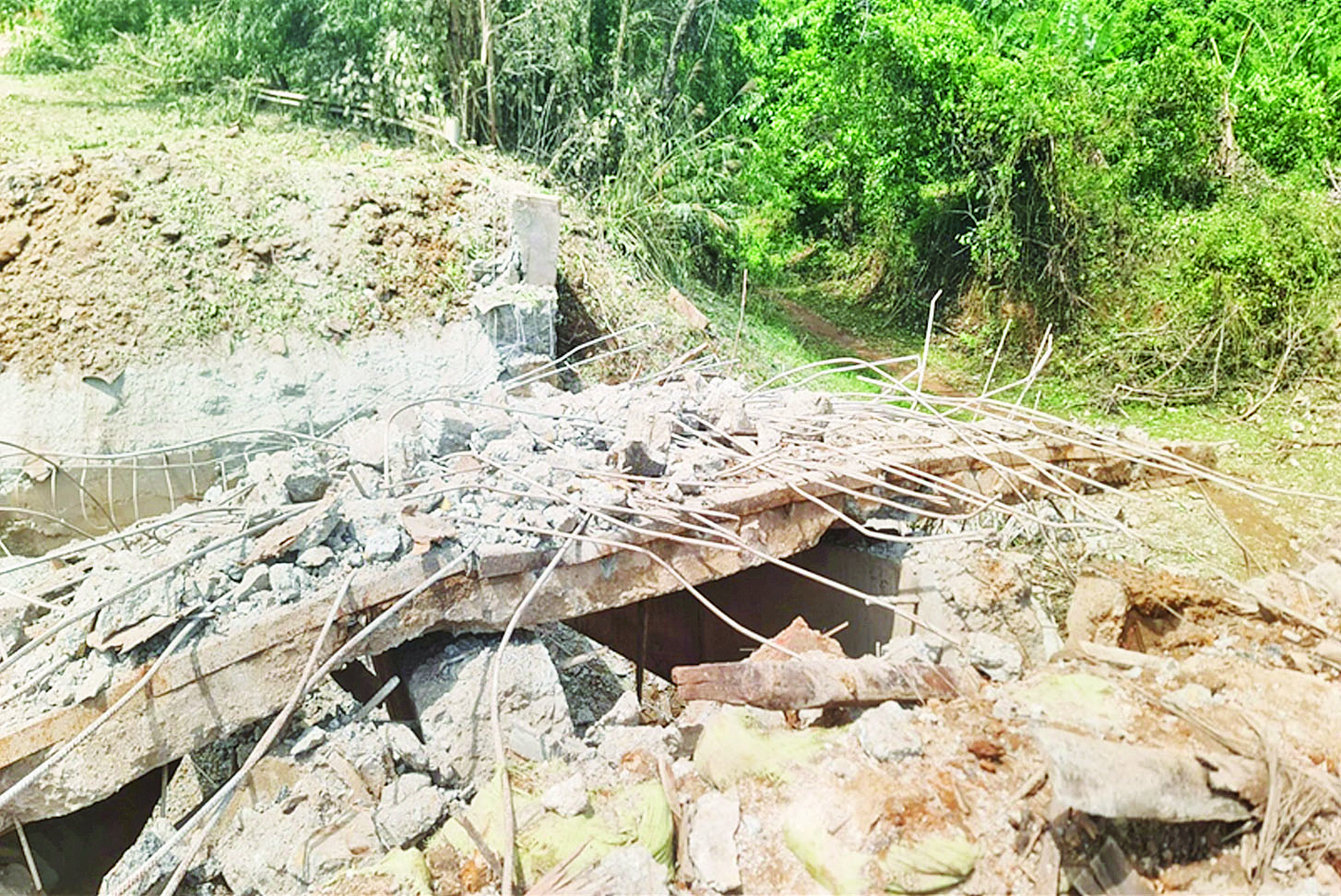 ထိုသို့ လုပ်ဆောင်လျက်ရှိရာ KNLA အဖွဲ့နှင့် PDF အမည်ခံ အကြမ်းဖက်သမားများက ယနေ့နံနက်ပိုင်းတွင် မွန်ပြည်နယ် ဘီးလင်းမြို့နယ် တညင်ပင်ကျေးရွာ ၏ အနောက်ဘက် မီတာ ၃၀၀ ခန့်အကွာ ဘီးလင်း-နတ်ကြီးသွား ကားလမ်းမကြီးပေါ်ရှိ မိုင်တိုင်အမှတ်၊ ၁၆/၂ နှင့် ၃ အကြား အရှည် ပေ ၈၀၊ အကျယ် ၂၄ ပေရှိ သံကူကွန်ကရစ်အမျိုးအစား တံတားအမှတ်(၃/၁၇)အား မိုင်းထောင်ဖောက်ခွဲဖျက်ဆီးခဲ့ကြသည်။ မိုင်းပေါက်ကွဲမှုဒဏ်ကြောင့် အဆိုပါသံကူကွန်ကရစ်တံတားမှာ တောင်ဘက်ကမ်းကပ်ခုံမှ ပြိုကျပျက်စီးခဲ့ပြီး လူနှင့်မော်တော်ယာဉ်များ ဖြတ်သန်းသွားလာနိုင်မှုမရှိကြောင်းနှင့် ပျက်စီးသွားသည့်တံတားအား တာဝန်ရှိသူများက ပြန်လည်ပြုပြင်ခြင်းလုပ်ငန်းများကို အမြန်ဆုံးဆောင်ရွက်လျက်ရှိကြောင်း သိရသည်။