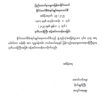 ဝန်ကြီးဌာန ကြေညာချက်များ