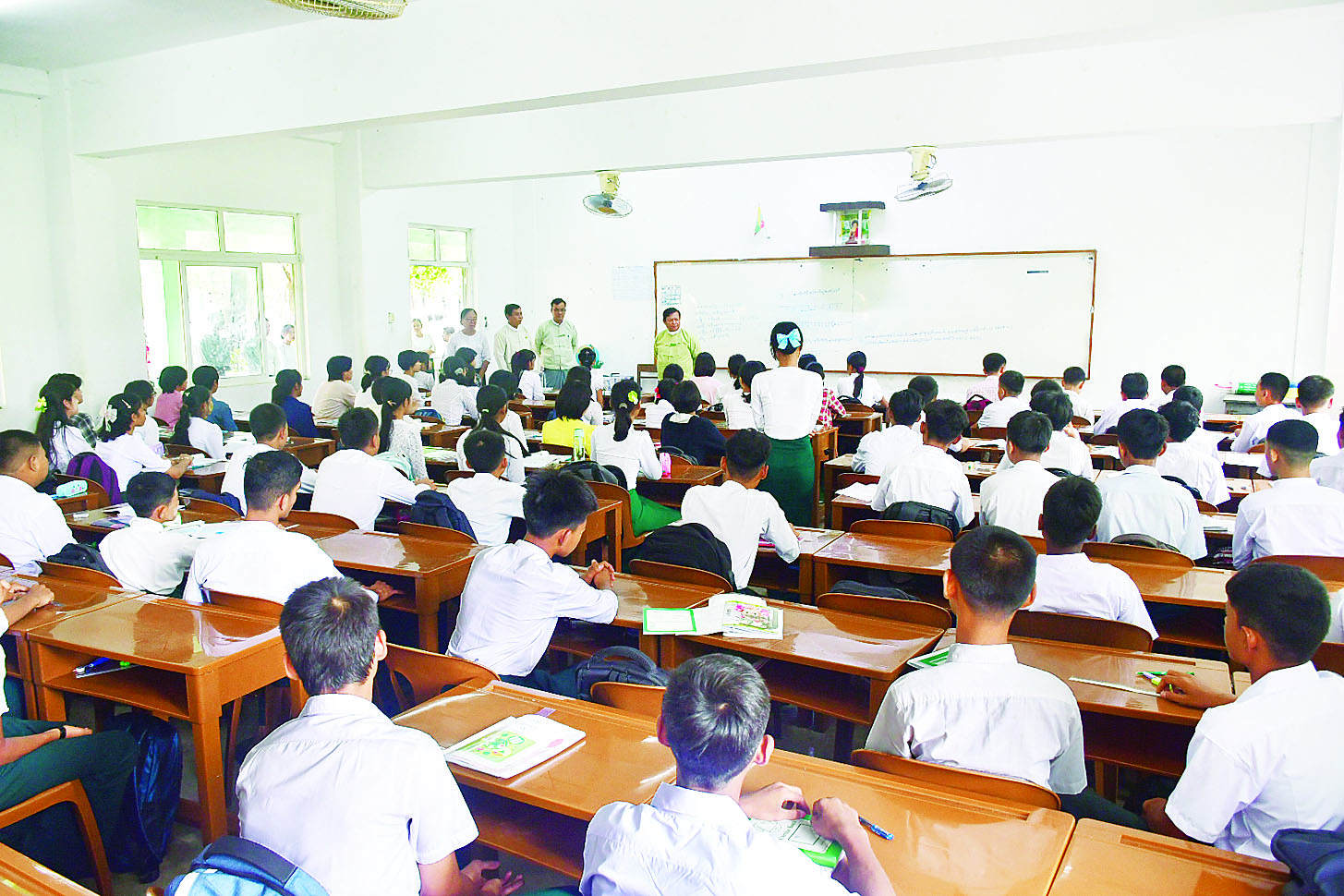 ထိုသို့ နိုင်ငံအဝန်းရှိ အခြေခံပညာကျောင်းများ၌ ဆရာ ဆရာမများနှင့် ကျောင်းသား ကျောင်းသူများ၏ ကျောင်းသင်ခန်းစာများ သင်ကြား/ သင်ယူနေမှုတို့ကို နေပြည်တော်ကောင်စီနယ်မြေအပါအဝင် တိုင်းဒေသကြီးနှင့် ပြည်နယ်များမှ ပြည်နယ်ဝန်ကြီးချုပ်များနှင့် တာဝန်ရှိသူများက သွားရောက်ကြည့်ရှုသည်။