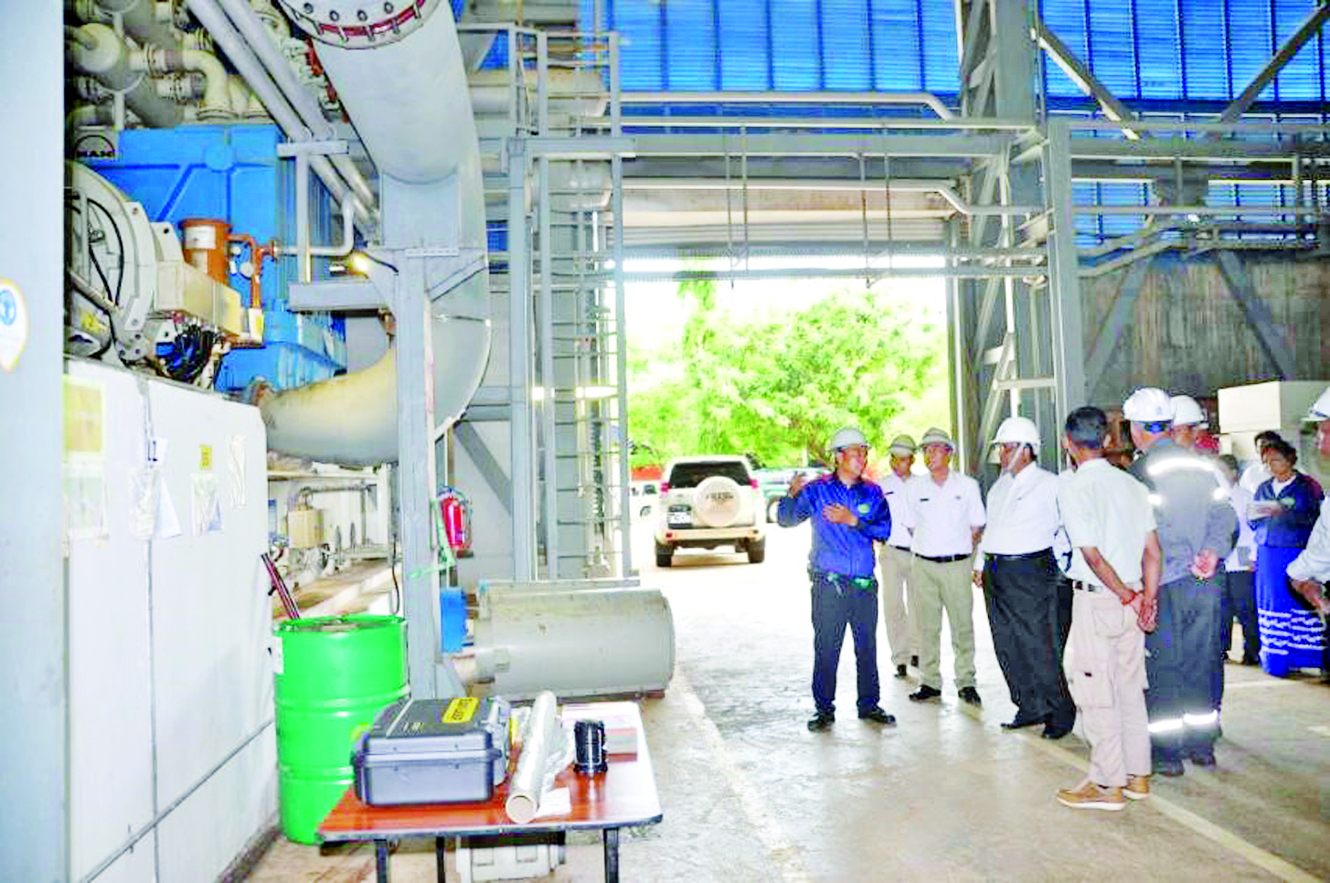 မွန်းလွဲပိုင်းတွင် ပြည်ထောင်စုဝန်ကြီးသည် Air Separation plant တွင် တပ်ဆင်ထားသည့် စက်ပစ္စည်းကိရိယာများအား ပြည်ပကျွမ်းကျင်ပညာရှင်များနှင့် စက်ရုံမှကျွမ်းကျင်ပညာရှင်များ ပူးပေါင်း၍ စစ်ဆေးပြုပြင်နေမှုတို့ကို ကြည့်ရှုစစ်ဆေးပြီး တင်ပြချက်များကို ပေါင်းစပ်ညှိနှိုင်းဆောင်ရွက်ပေးခဲ့ကြောင်း သိရ သည်။