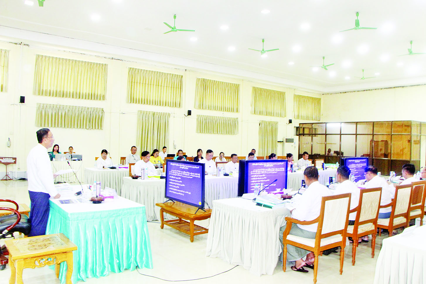 ဦးစွာ ကော်မတီဥက္ကဋ္ဌက ယနေ့အစည်းအဝေးတွင် နိုင်ငံ့စီးပွားမြှင့်တင်ရေးရန်ပုံငွေမှ စီမံကိန်းနှင့်ဘဏ္ဍာရေးဝန်ကြီးဌာန၊ စိုက်ပျိုးရေး၊ မွေးမြူရေးနှင့်ဆည်မြောင်းဝန်ကြီးဌာန၊ တိုင်းဒေသကြီး၊ ပြည်နယ်အစိုးရ အဖွဲ့ ၁၄ ခုနှင့် ကိုယ်ပိုင်အုပ်ချုပ်ခွင့်ရတိုင်း၊ ဒေသစီမံအုပ်ချုပ်ရေးအဖွဲ့ ခြောက်ခုသို့ ၂၀၂၂ ခုနှစ် စက်တင်ဘာ ၁ ရက်မှ ၂၀၂၅ ခုနှစ် ဇွန် ၁၀ ရက်အထိ ချေးငွေများထုတ်ချေးထားရှိမှုနှင့် ပြန်လည်ပေးဆပ်မှုအခြေအနေ၊ သဘာဝဘေးအန္တရာယ်များကြောင့် ချေးငွေအရင်း၊ အတိုးဆိုင်းငံ့ပေးခဲ့မှုများ၊ စိုက်ပျိုးရေးနှင့် မွေးမြူရေးကဏ္ဍများတွင် နိုင်ငံ့စီးပွားမြှင့်တင်ရေး ရန်ပုံငွေမှ ချေးငွေထုတ်ချေးပေးနိုင်မှုအခြေအနေ၊ ချေးငွေများအား ဘဏ္ဍာရေးလုပ်ထုံးလုပ်နည်းများနှင့်အညီ ထုတ်ချေးနိုင်ရေး၊ ချေးငွေစာရင်းဇယားများကို စနစ်တကျပြုစု၍ သက်ဆိုင်ရာတိုင်းဒေသကြီး၊ ပြည်နယ်များ၏ ရန်ပုံငွေစီမံခန့်ခွဲမှုကော်မတီများက ကြပ်မတ်ဆောင်ရွက်ရေးနှင့် မှတ်တမ်းတင်ထားရှိရေး၊ ပြည်ထောင်စုစာရင်းစစ်ချုပ်ရုံး၏ စစ်ဆေးတွေ့ရှိချက်များအပေါ် လိုက်နာဆောင်ရွက်မှု ပြီးစီးမှုအခြေ အနေများနှင့် တွေ့ကြုံရသည့်အခက်အခဲများကို ဆွေးနွေးကြရန် ပြောကြားသည်။