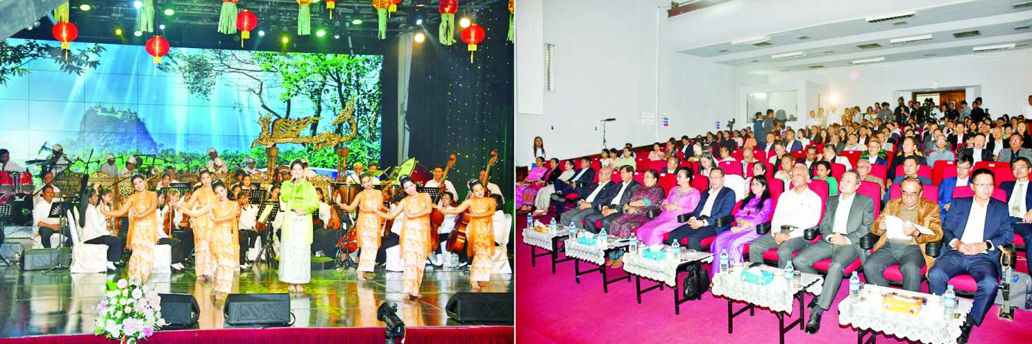 ဆက်လက်၍ မြန်မာ့အသံနှင့်ရုပ်မြင်သံကြားမှ မြန်မာ့ဆိုင်းဝိုင်းကြီး၊ သံစုံတီးဝိုင်းနှင့် ခေတ်ပေါ်တေးဂီတအဖွဲ့တို့၏ တီးခတ်မှုနှင့်အတူ MRTV နှင့် ပြင်ပတေးသံရှင်စုစုပေါင်း ၁၁ ဦးတို့က မြန်မာ- တရုတ်နှစ်ဘာသာဖြင့် တေးသီချင်းများကို တေးသရုပ်ဖော်အကများနှင့် တွဲဖက်၍ သီဆိုဖျော်ဖြေတင်ဆက်ကြသည်။