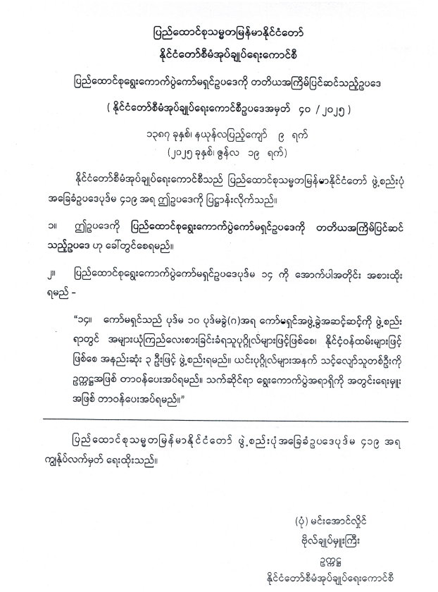 ပြည်ထောင်စုရွေးကောက်ပွဲကော်မရှင်ဥပဒေကို တတိယအကြိမ်ပြင်ဆင်သည့်ဥပဒေ