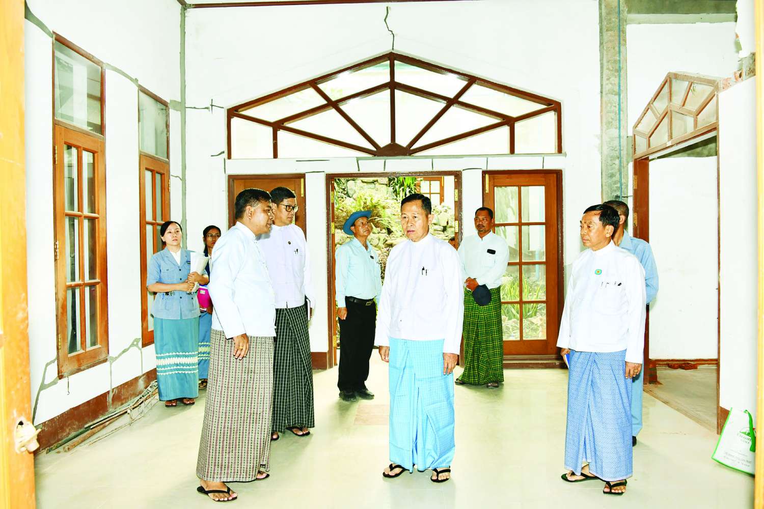 ဦးစွာ နိုင်ငံတော်စီမံအုပ်ချုပ်ရေးကောင်စီဒုတိယဥက္ကဋ္ဌ ဒုတိယဝန်ကြီးချုပ်နှင့် အဖွဲ့ဝင်များသည် ဇမ္ဗူသီရိမြို့နယ် ဇေယျသိဒ္ဓိရပ်ကွက်ရှိ ပြည်ထောင်စုဝန်ကြီးအိမ်ရာများ ငလျင်ဒဏ်ကြောင့် ထိခိုက်ပျက်စီးခဲ့မှုများ ပြန်လည်ပြုပြင်ခြင်းလုပ်ငန်းများ ဆောင်ရွက်နေမှုအခြေအနေများနှင့် ပြုပြင်ပြီးစီးမှုအခြေအနေများကို လိုက်လံကြည့်ရှုစစ်ဆေးပြီး လိုအပ်သည်များကို တာဝန်ရှိသူများနှင့် ပေါင်းစပ်ညှိနှိုင်းဆောင်ရွက်ပေးသည်။