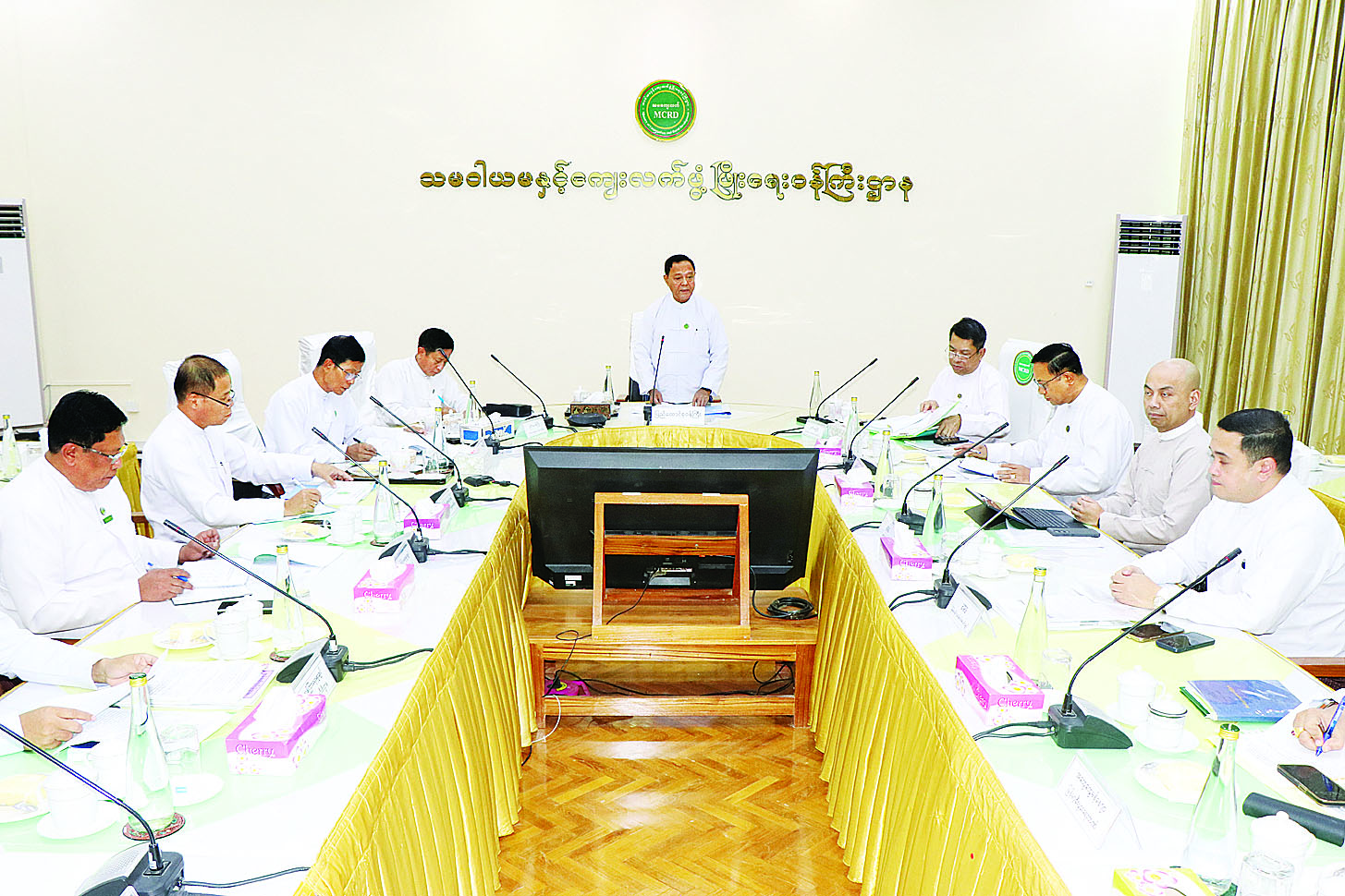 ယူရီးယားမြေဩဇာ ဝယ်ယူဖြန့်ဖြူးရောင်းချရေး ဦးဆောင်ကော်မတီ၏ အစည်းအဝေးကို ယနေ့မွန်းလွဲပိုင်းတွင် သမဝါယမနှင့်ကျေးလက်ဖွံ့ဖြိုးရေးဝန်ကြီးဌာန အစည်းအဝေးခန်းမ၌ ကျင်းပရာ ဦးဆောင်ကော်မတီဥက္ကဋ္ဌ ပြည်ထောင်စုဝန်ကြီး ဦးလှမိုး၊ ကော်မတီဝင် ဒုတိယဝန်ကြီးများ၊ ဌာနဆိုင်ရာတာဝန်ရှိသူများ၊ မြန်မာနိုင်ငံမြေဩဇာ၊ မျိုးစေ့နှင့် စိုက်ပျိုးရေး ဆေးလုပ်ငန်းရှင်များအသင်း၊ မြန်မာနိုင်ငံဆန်စပါးအသင်းချုပ်မှ ကိုယ်စားလှယ်များ၊ ဦးဆောင်ကော်မတီအဖွဲ့ဝင်များနှင့် တာဝန်ရှိသူများ တက်ရောက်ကြသည်။