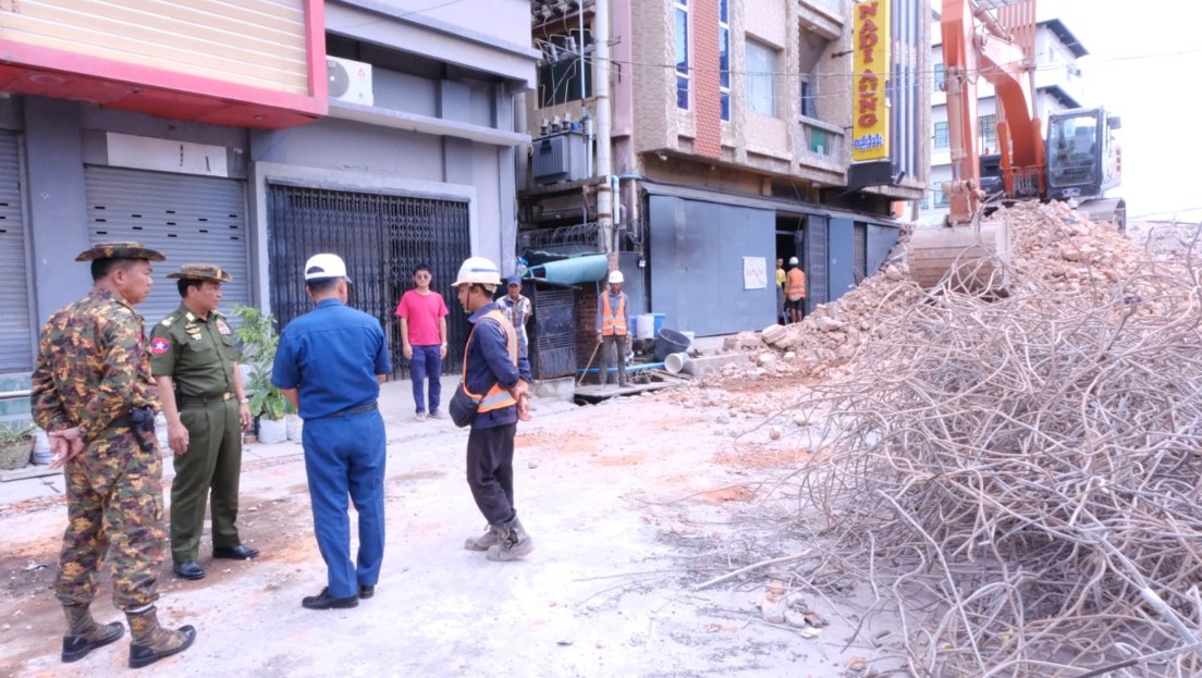 အလားတူ ကာကွယ်ရေးဦးစီးချုပ်ရုံး (ကြည်း) မှ ဒုတိယဗိုလ်ချုပ်ကြီး စိုးတင့်နိုင်နှင့် တာဝန်ရှိသူများသည် မန္တလေးမြို့၊ ချမ်းမြသာစည်မြို့နယ်၊ အောင်သာယာရပ်ကွက်၊ မဟာအောင်မြေမြို့နယ်၊ မဟာမြိုင်ရပ်ကွက်နှင့် အောင်မြေသာစံမြို့နယ်၊ မင်းတဲအီးကင်းရပ်ကွက်များရှိ ငလျင်ဒဏ်ကြောင့် ပြိုကျပျက်စီးခဲ့သော အန္တရာယ်ရှိ အဆောက်အအုံအပျက်အစီးများအား စက်ယန္တရားကြီးများအသုံးပြု၍ အပြီးသတ်ဖယ်ရှားရှင်းလင်းနေမှု၊ အများပြည်သူ အသုံးပြုမှုများသည့် လမ်းမကြီးများ လမ်းပိတ်ဆို့မှုမဖြစ်ပေါ်စေရေးနှင့် အန္တရာယ်ကင်းစွာသွားလာနိုင်ရေး ဆောင်ရွက်ထားရှိမှုတိုကို ကြည့်ရှုစစ်ဆေး၍ လိုအပ်သည်များမှာကြားပြီး တာဝန်ရှိသူများ၏ တင်ပြချက်များအပေါ် လိုအပ်သည်များ ပေါင်းစပ်ညှိနှိုင်းဆောင်ရွက်ပေးခဲ့ကြောင်း သတင်းရရှိသည်။