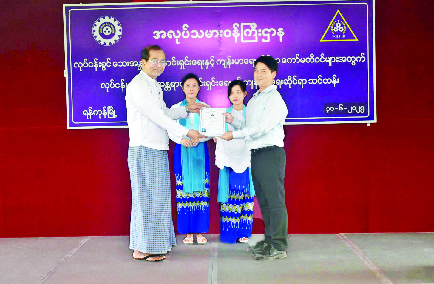 အလုပ်သမားဝန်ကြီးဌာန ဒုတိယဝန်ကြီး ဦးဝင်းရှိန်သည် ရန်ကုန်တိုင်းဒေသကြီး တိုင်းရင်းသားရေးရာဝန်ကြီး၊ တာဝန်ရှိသူများနှင့်အတူ ယနေ့နံနက်ပိုင်းတွင် လှိုင်သာယာ(အရှေ့ပိုင်း) မြို့နယ်ရှိ အမျိုးသားလုပ်ငန်းခွင်ဘေးအန္တရာယ်ကင်းရှင်းရေးနှင့် ကျန်းမာရေးသင်တန်းကျောင်း၌ လုပ်ငန်းခွင်ဘေးအန္တရာယ် ကင်းရှင်းရေးနှင့် ကျန်းမာရေးကော်မတီဝင်များနှင့် တွေ့ဆုံသည်။