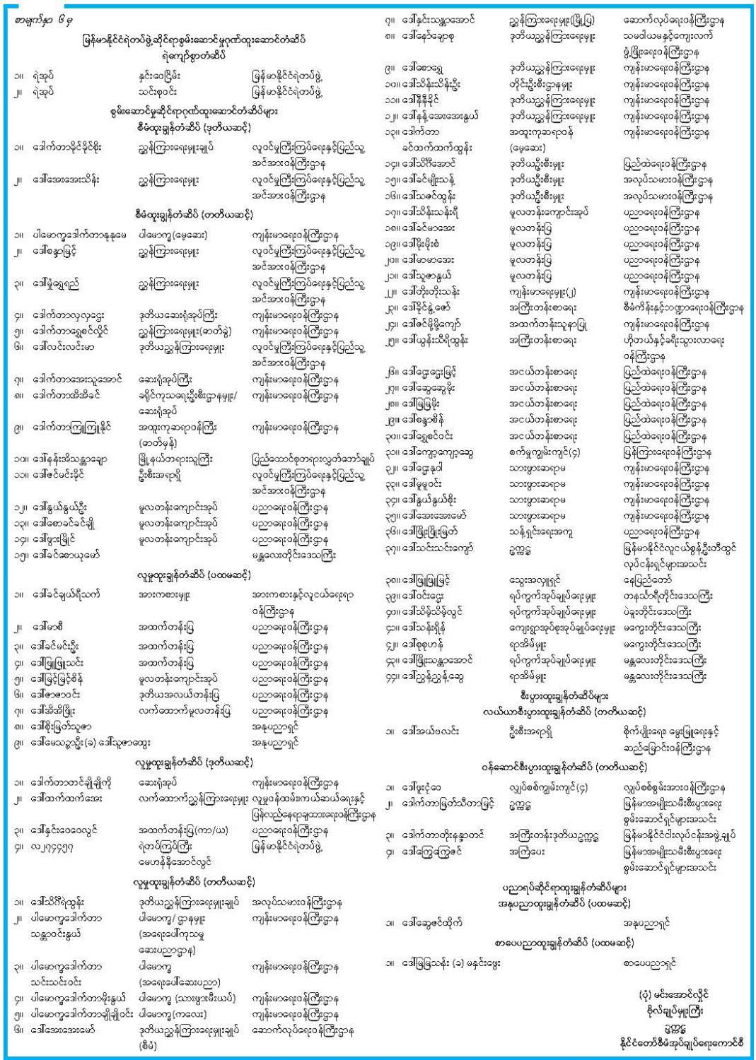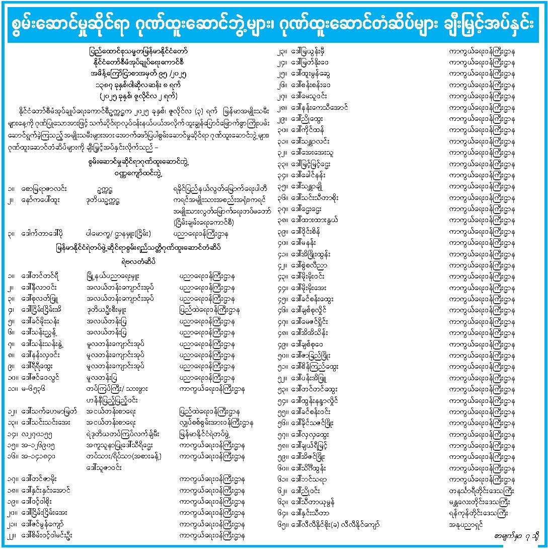 ဝန်ကြီးဌာန ကြေညာချက်များ