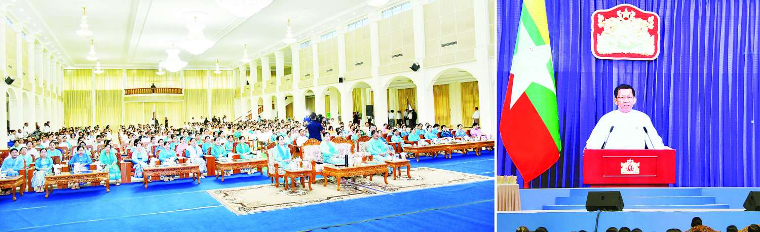 နိုင်ငံတော်စီမံအုပ်ချုပ်ရေးကောင်စီဥက္ကဋ္ဌ နိုင်ငံတော်ဝန်ကြီးချုပ်၏ ဇနီး ဒေါ်ကြူကြူလှ ၂၀၂၅ ခုနှစ် မြန်မာအမျိုးသမီးများနေ့အခမ်းအနားသို့ တက်ရောက်ချီးမြှင့်