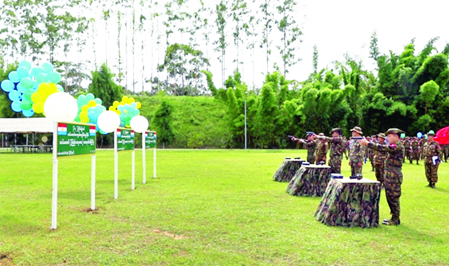 (၆၃)ကြိမ်မြောက် တပ်မတော်ကာကွယ်ရေးဦးစီးချုပ်ဒိုင်း တပ်မတော်(ကြည်း၊ ရေ၊ လေ) သေနတ်ပစ်ပြိုင်ပွဲဖွင့်ပွဲကို ယနေ့နံနက်ပိုင်းက ပြင်ဦးလွင်မြို့ရှိ တပ်မတော်စက်ပစ်ကွင်း၌ ပြုလုပ်ရာ အလယ်ပိုင်းတိုင်းစစ်ဌာနချုပ် တိုင်းမှူး ဗိုလ်မှူးချုပ် ကျော်ကိုထိုက်နှင့် အဖွဲ့ဝင်များ၊ အရာရှိ၊ စစ်သည်၊ မိသားစုများ၊ ဖိတ်ကြားထားသူများ၊ ဒိုင်အဖွဲ့ဝင်များနှင့် ပြိုင်ပွဲဝင်အသင်းများ တက်ရောက်ကြသည်။