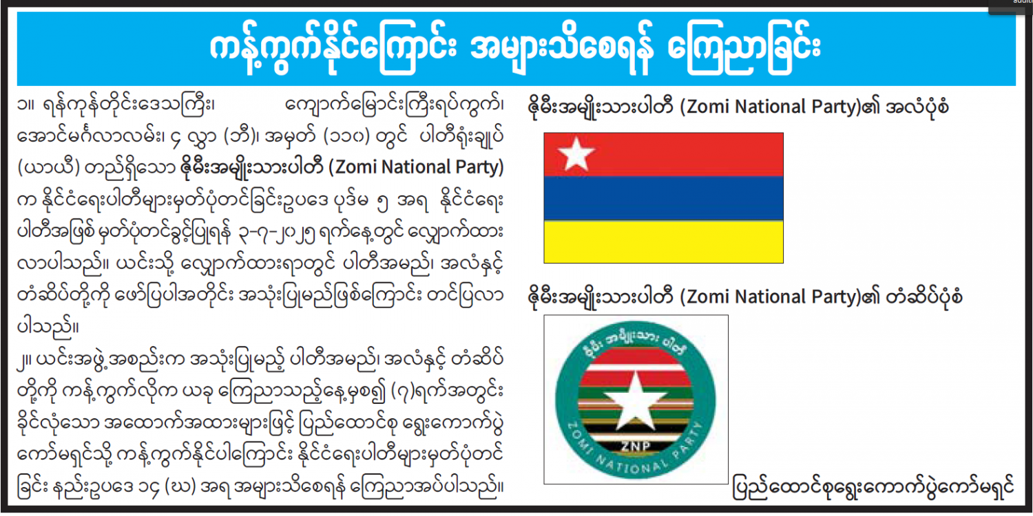ကန့်ကွက်နိုင်ကြောင်း အများသိစေရန် ကြေညာခြင်း