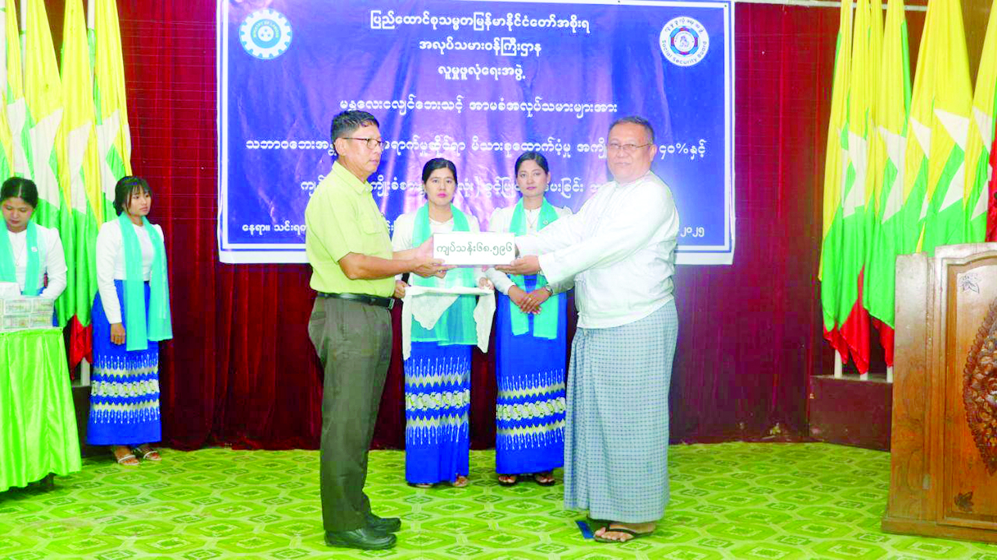 ရမည်းသင်းမြို့နယ်ရှိ ငလျင်ဘေးသင့်အာမခံအလုပ်သမားများအား သဘာဝဘေးအန္တရာယ် ကျရောက်မှုဆိုင်ရာ မိသားစုထောက်ပံ့မှုအကျိုးခံစားခွင့် ၄၀ ရာခိုင်နှုန်းပေးအပ်