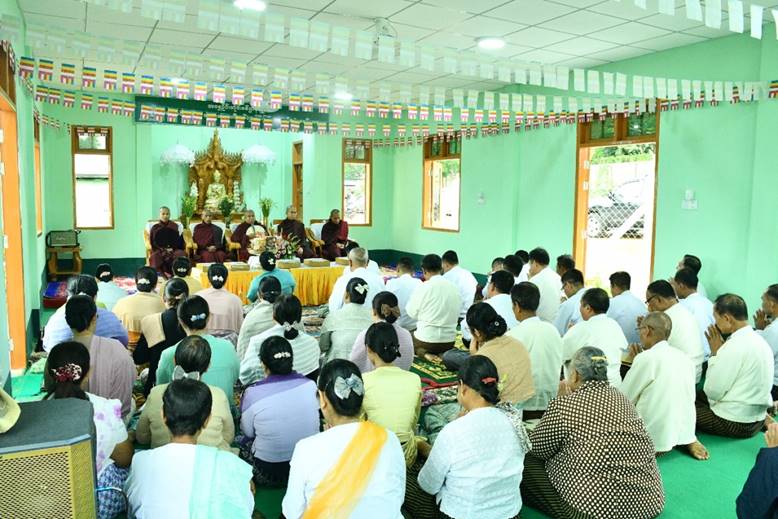 ဦးစွာ တိုင်းမှူးနှင့် တက်ရောက်လာကြသူများက ချမ်းမြေ့ရိပ်သာကျောင်း ဆရာတော်ထံမှ ငါးပါးသီလခံယူဆောက်တည်ကြကာ သံဃာတော်များရွတ်ပွားချီးမြှင့်တော်မူသော ပရိတ်တရားတော်များ နာယူကြည်ညိုကြသည်။ ယင်းနောက် တိုင်းမှူးနှင့် တာဝန်ရှိသူများက သံဃာတော်များအား သင်္ကန်းနှင့်လှူဖွယ်ပစ္စည်းများ ဆက်ကပ်လှူဒါန်းကြပြီး ချမ်းမြေ့ရိပ်သာကျောင်း ဆရာတော်ထံမှ အနုမောဒနာတရားများနာယူကြကာ လှူဒါန်းမှုအစုစုတို့အတွက် ရေစက်သွန်းချအမျှပေးဝေကြပြီး သံဃာတော်များအား နေ့ဆွမ်း ဆက်ကပ်လှူဒါန်းခဲ့ကြကြောင်း သတင်းရရှိသည်။