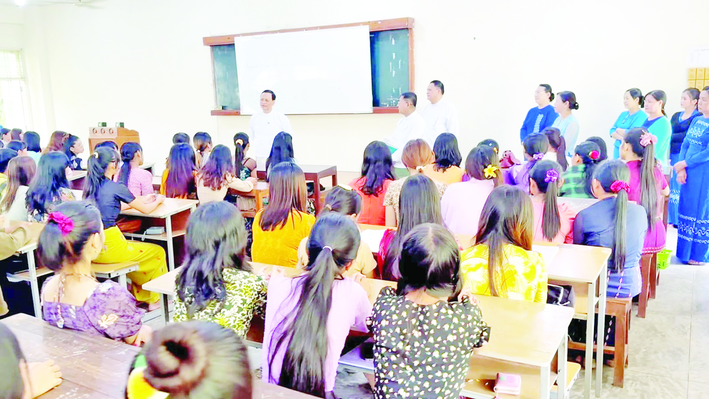 ပညာရေးဝန်ကြီးဌာန ဒုတိယဝန်ကြီး ဒေါက်တာဇော်မြင့်သည် ယနေ့နံနက်ပိုင်းတွင် တောင်ငူပညာရေးဒီဂရီကောလိပ်သို့ ရောက်ရှိ၍ လက်တွေ့တန်းပြဆင်းကြမည့် သင်တန်းသားများအား လမ်းညွှန်ပို့ချနေမှုကို ကြည့်ရှုလေ့လာပြီး သင်တန်းသားများအား မိမိ၏သင်ကြားမှုကို အစဉ်အမြဲတိုးတက်နေစေရေး လေ့လာမြှင့်တင်ကြရန်မှာကြားကာ စာသင်ခန်းများ၌ သင်တန်းသားများ ပညာသင်ယူနေမှုကို ကြည့်ရှုသည်။