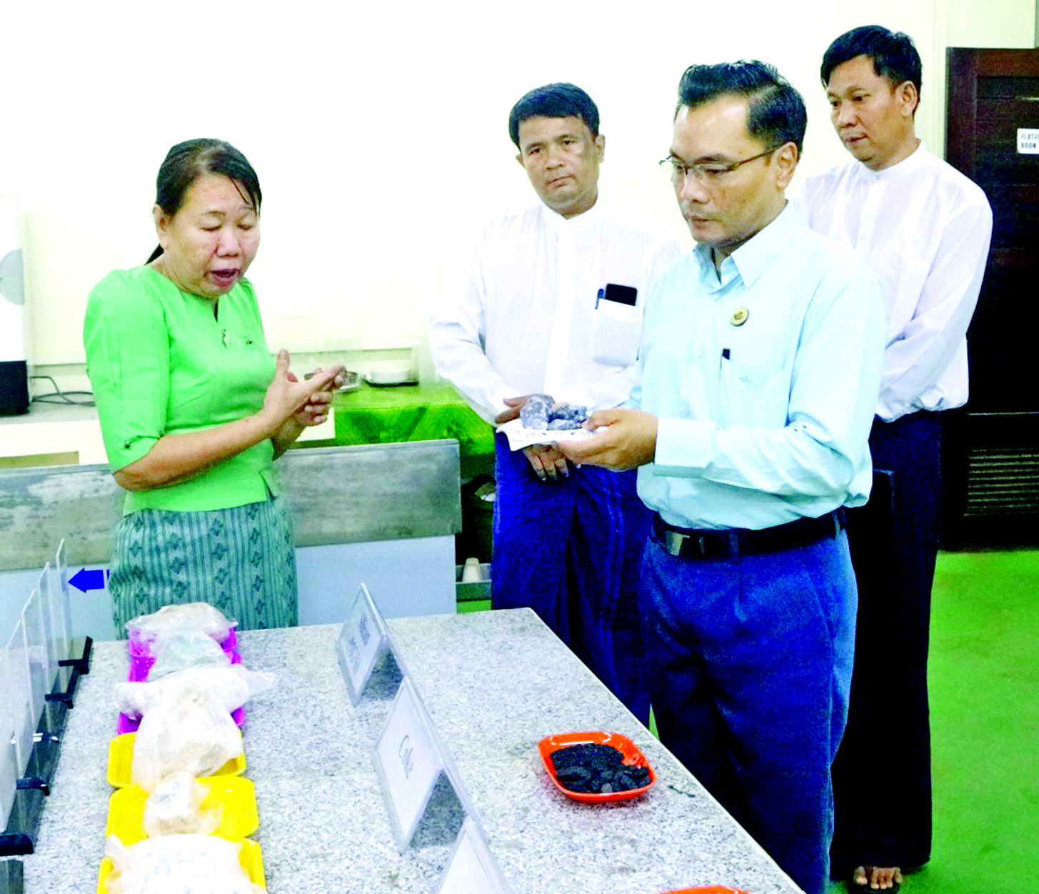ယင်းနောက် ဇလသတ္တုဗေဒ ဌာနရှိ EV ဘက်ထရီဆိုင်ရာ သုတေသနလုပ်ငန်းများ၊ အဂ္ဂိသတ္တုဗေဒဌာနစုရှိ သုတေသနလုပ်ငန်းများ၊ သံ၊ သံမဏိနှင့် သတ္တုစပ်ထုတ်လုပ်ရေးဌာနရှိ Ferro Manganese Alloy ထုတ်လုပ်ခြင်း၊ ဆိုလာပြားထုတ်လုပ်ရေးအထောက်အကူပြု အရည်အသွေးမြင့် ဆီလီကွန်သတ္တု (Metallurgical Grade Silicon) စမ်းသပ်ထုတ်လုပ်ခြင်းနှင့် Ferro Silicon စမ်းသပ်ထုတ်လုပ်ခြင်း သုတေသနလုပ်ငန်းများ၊ တွင်းထွက်ဗေဒဌာနရှိ သတ္တုရိုင်းများရှာဖွေမှုဆိုင်ရာ သုတေသနပြုခြင်းစသည့် လုပ်ငန်းများမှ သုတေသနပြုရလဒ်များကို ကြည့်ရှုစစ်ဆေးကာ လိုအပ်သည်များ မှာကြားသည်။