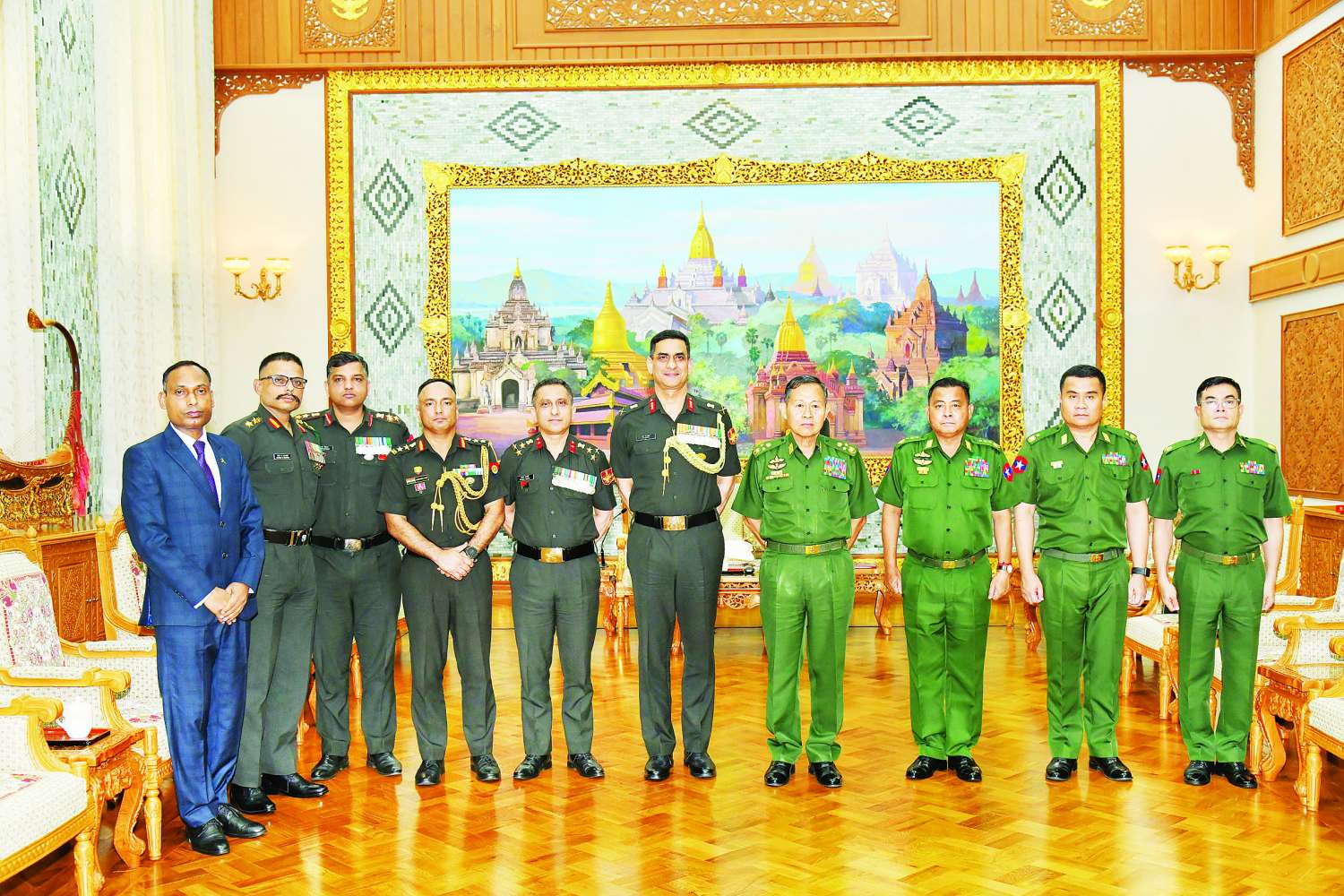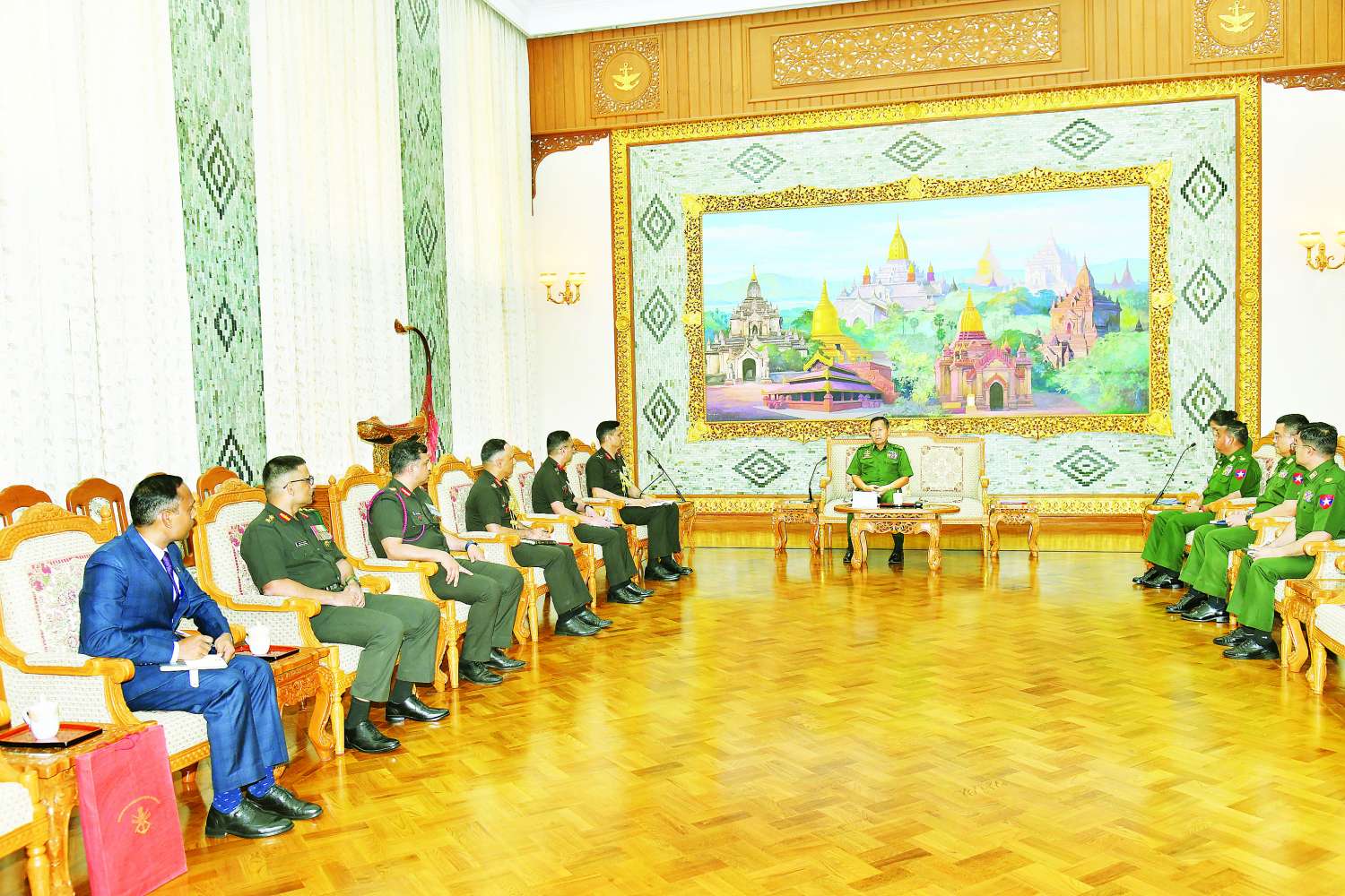 နိုင်ငံတော်စီမံအုပ်ချုပ်ရေးကောင်စီ ဒုတိယဥက္ကဋ္ဌ ဒုတိယတပ်မတော်ကာကွယ်ရေးဦးစီးချုပ် ကာကွယ်ရေးဦးစီးချုပ်(ကြည်း)ဒုတိယဗိုလ်ချုပ်မှူးကြီး စိုးဝင်းသည် အိန္ဒိယတပ်မတော်ကာကွယ်ရေးဆိုင်ရာ ထောက်လှမ်းရေးညွှန်ကြားရေးမှူးချုပ်နှင့် ဒုတိယစစ်ဦးစီးချုပ်(ထောက်လှမ်းရေး)Lieutenant General Shrinjay Pratap Singh, AVSM, YSM ဦးဆောင်သော ကိုယ်စားလှယ်အဖွဲ့အား ယနေ့မွန်းလွဲပိုင်းတွင် နေပြည်တော်ရှိ ဘုရင့်နောင်ရိပ်သာ ဧည့်ခန်းမ၌ လက်ခံတွေ့ဆုံသည်။