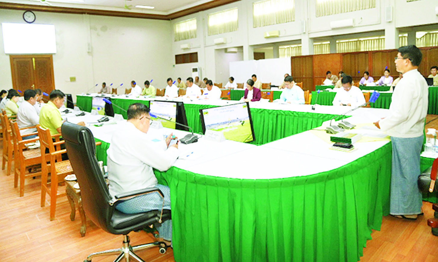 ထို့နောက် ဗဟိုလယ်ယာမြေစီမံခန့်ခွဲမှုအဖွဲ့အတွင်းရေးမှူးက အစည်းအဝေးတွင် ဆွေးနွေးစိစစ်ဆောင်ရွက်ရမည့် လုပ်ငန်းစာတွဲများကို တင်ပြရာ ဗဟိုလယ်ယာမြေစီမံခန့်ခွဲမှုအဖွဲ့ဥက္ကဋ္ဌနှင့် အစည်းအဝေးတက်ရောက်လာကြသူများက အကြောင်းအရာတစ်ခုချင်းကို စိစစ်ဆောင်ရွက်ခဲ့ကြပြီး သက်ဆိုင်ရာလယ်ယာမြေစီမံခန့်ခွဲမှုအဖွဲ့များမှ စိစစ်တင်ပြလာသော လယ်ယာမြေစီမံခန့်ခွဲရေးနှင့်သက်ဆိုင်သည့် ကိစ္စရပ်များကို ဆွေးနွေးဆောင်ရွက်ခဲ့ကြကြောင်း သိရသည်။