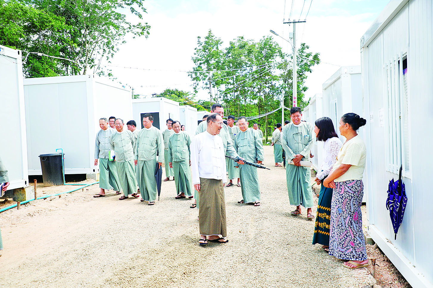 ပြည်ထောင်စုရွေးကောက်ပွဲကော်မရှင်ဥက္ကဋ္ဌ ဦးကိုကို၊ ဒုတိယဥက္ကဋ္ဌ ဦးသန်းစိုးနှင့် အဖွဲ့ဝင်များသည် ယနေ့မွန်းလွဲ ၂ နာရီတွင် ပြည်ထောင်စုရွေးကောက်ပွဲကော်မရှင်ရုံးအနီး ထိန်းသိမ်းဧရိယာ၌ ငလျင်ဘေးသင့် ဝန်ထမ်းအိမ်ထောင်စု ၈၈ စု ယာယီနေထိုင်ရန်အတွက် တပ်ဆင်တည်ဆောက်ပြီးစီးပြီဖြစ်သော အမျိုးသားသဘာဝဘေးအန္တရာယ်ဆိုင်ရာ စီမံခန့်ခွဲမှုကော်မတီက ခွဲဝေချထားပေးသည့် Con-tainer House ၈၈ လုံးသို့ ဝန်ထမ်းများ ပြောင်းရွှေ့နေထိုင်မှုကို သွားရောက်ကြည့်ရှုစစ်ဆေးသည်။