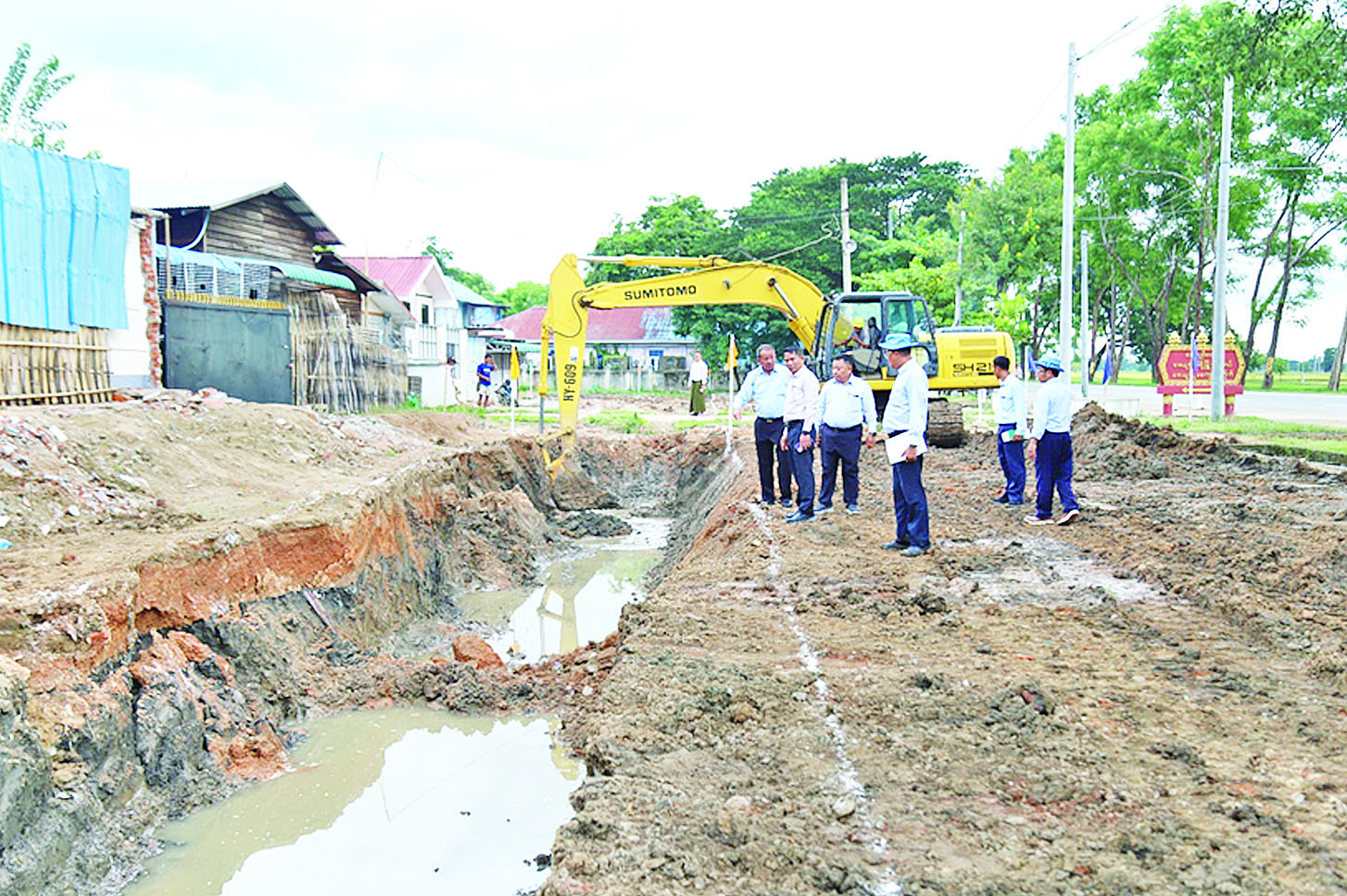 ကြည့်ရှုစစ်ဆေးစဉ် ပြည်ထောင်စုဝန်ကြီးက တာဝန်ရှိသူများကို ဒေသရေကြီးရေလျှံမှုကာကွယ်ရေးအတွက် ရေနုတ်မြောင်းတူးဖော်ခြင်းလုပ်ငန်း သတ်မှတ်ကာလပြီးစီးရန် မြေတူးဖော်ဆောင်ရွက်ရာတွင် လမ်းနယ်အတိုင်းအတာများ ပေးထားပြီး စနစ်တကျ ဆောင်ရွက်ရန်နှင့် ပထမဆုံးရေဝပ်ဧရိယာများ၊ ချုံ၊ ဗေဒါပင်များကြောင့် ရေစီးဆင်းမှုနည်းနေသည့် နေရာများကို ရေစီးရေလာကောင်းမွန်ရေး ဦးစားပေးဆောင်ရွက်ရန် ဆွေးနွေးမှာကြားသည်။