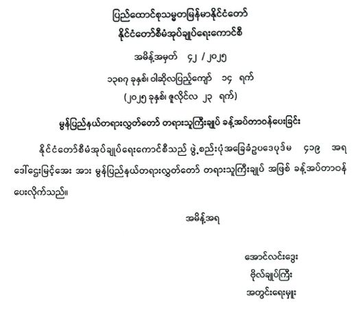မွန်ပြည်နယ်တရားလွှတ်တော် တရားသူကြီးချုပ် ခန့်အပ်တာဝန်ပေးခြင်း