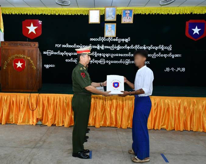 ယနေ့တွင်လည်း MDY-PDF အဖွဲ့မှ အမျိုးသား ၁၄ ဦး နှင့် အမျိုးသမီး ၁ ဦး၊ စုစုပေါင်း ၁၅ ဦးတို့သည် ဥပဒေဘောင်အတွင်း ငြိမ်းချမ်းစွာနေထိုင်လိုခြင်း၊ နိုင်ငံတော်အစိုးရ၏ ငြိမ်းချမ်းရေးလုပ်ငန်းစဉ်များအား ယုံကြည်လက်ခံလာခြင်းများကြောင့် ဥပဒေဘောင်အတွင်းကို ပြန်လည်ဝင်ရောက်လာခဲ့ရာ ၎င်းတို့ကို တာဝန်ရှိသူများက ပြန်လည်လက်ခံပြီး လိုအပ်သည့် ကူညီထောက်ပံ့မှုများ ဆောင်ရွက်ပေးခဲ့ကာ မိဘအုပ်ထိန်းသူများထံကို စနစ်တကျပြန်လည်လွှဲပြောင်း အပ်နှံပေးလျက်ရှိသည်။