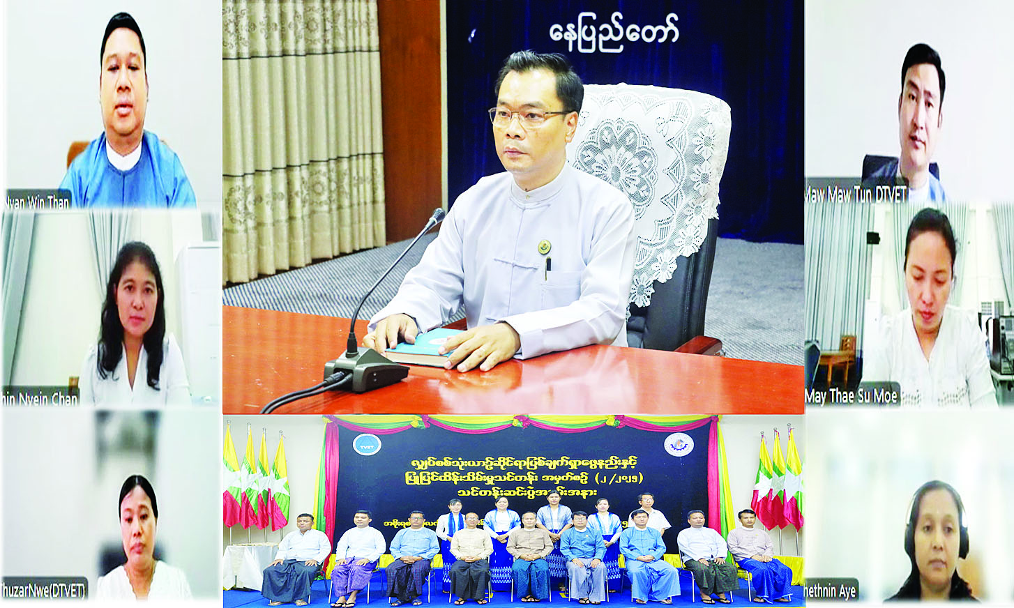 EV ပြုပြင်ထိန်းသိမ်းမှုသင်တန်း(၂/၂၀၂၅) ဆင်းပွဲအခမ်းအနားကို ဇူလိုင် ၂၅ ရက်က အစိုးရစက်မှုလက်မှုသိပ္ပံ (အင်းစိန်)၌ကျင်းပရာ လျှပ်စစ်သုံးယာဉ်နှင့်ဆက်စပ်ပစ္စည်းများ သုတေသနဖွံ့ဖြိုးရေးနှင့် နည်းပညာပြန့်ပွားရေးလုပ်ငန်းကော်မတီဥက္ကဋ္ဌ သိပ္ပံနှင့်နည်းပညာဝန်ကြီးဌာန ဒုတိယဝန်ကြီး ဒေါက်တာအောင်ဇေယျသည် ဗီဒီယိုကွန်ဖရင့်ဖြင့် တက်ရောက်အမှာစကားပြောကြားသည်။