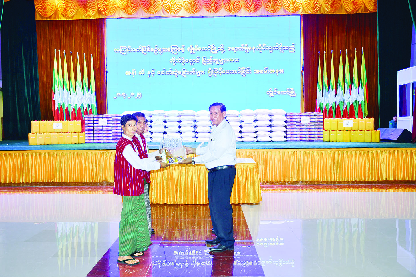 အဆိုပါ ပေးအပ်ပွဲတွင် နိုင်ငံတော်စီမံအုပ်ချုပ်ရေးကောင်စီအဖွဲ့ဝင်နှင့် ပြည်နယ်ဝန်ကြီးချုပ်တို့က အမှာစကားပြောကြားပြီး နိုင်ငံတော်စီမံအုပ်ချုပ်ရေးကောင်စီအဖွဲ့ဝင်၊ ပြည်နယ်ဝန်ကြီးချုပ်နှင့် တာဝန်ရှိသူများက ယာယီနေရပ်စွန့်ခွာ ပြည်သူများအား ဆန်၊ ဆီ၊ ခေါက်ဆွဲခြောက်များကိုပေးအပ်ကြ၍ တက်ရောက်လာသူများက လိုအပ်ချက်များ၊ ဖြည့်ဆည်းပေးရန်အချက်များအား တင်ပြကြရာ တာဝန်ရှိသူများက ဖြည့်ဆည်းဆောင်ရွက် ပေးနိုင်မည့်အခြေအနေကို ပြန်လည်ရှင်းလင်းပြောကြားကြသည်။