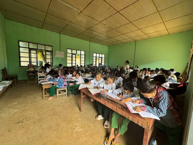 ထိုသို့ ကျောင်းနေအရွယ်ကလေးများအား တန်းစဉ်အလိုက် ပညာသင်ကြားနိုင်ရေးအတွက် အခြေခံပညာကျောင်းများကို ဖွင့်လှစ်ပညာသင်ကြားပေးလျက်ရှိရာ ယနေ့တွင်လည်း ကျောင်းသား/ကျောင်းသူ ၁၇၃၃ ဦး အေးချမ်းပျော်ရွှင်စွာ တက်ရောက်ပညာသင်ကြားလျက်ရှိသည့်အပြင် ထပ်မံလာရောက် ကျောင်းအပ်နှံသူ ကျောင်းသား/ကျောင်းသူများကိုလည်း ကျောင်းအပ်လက်ခံခြင်းများကို ဆက်လက် ဆောင်ရွက်ပေးလျက်ရှိပြီး ကျောင်းလာရောက်အပ်နှံသည့် ကျောင်းသား/ကျောင်းသူများအား ပညာရေးဝန်ကြီးဌာနက အခမဲ့ပေးအပ်သည့် ကျောင်းသုံး စာအုပ်များ၊ စာရေးကိရိယာများနှင့် ကျောင်းဝတ်စုံများကို ဆက်လက်ပေးအပ်သွားမည်ဖြစ်ကြောင်း သိရှိရသည်။