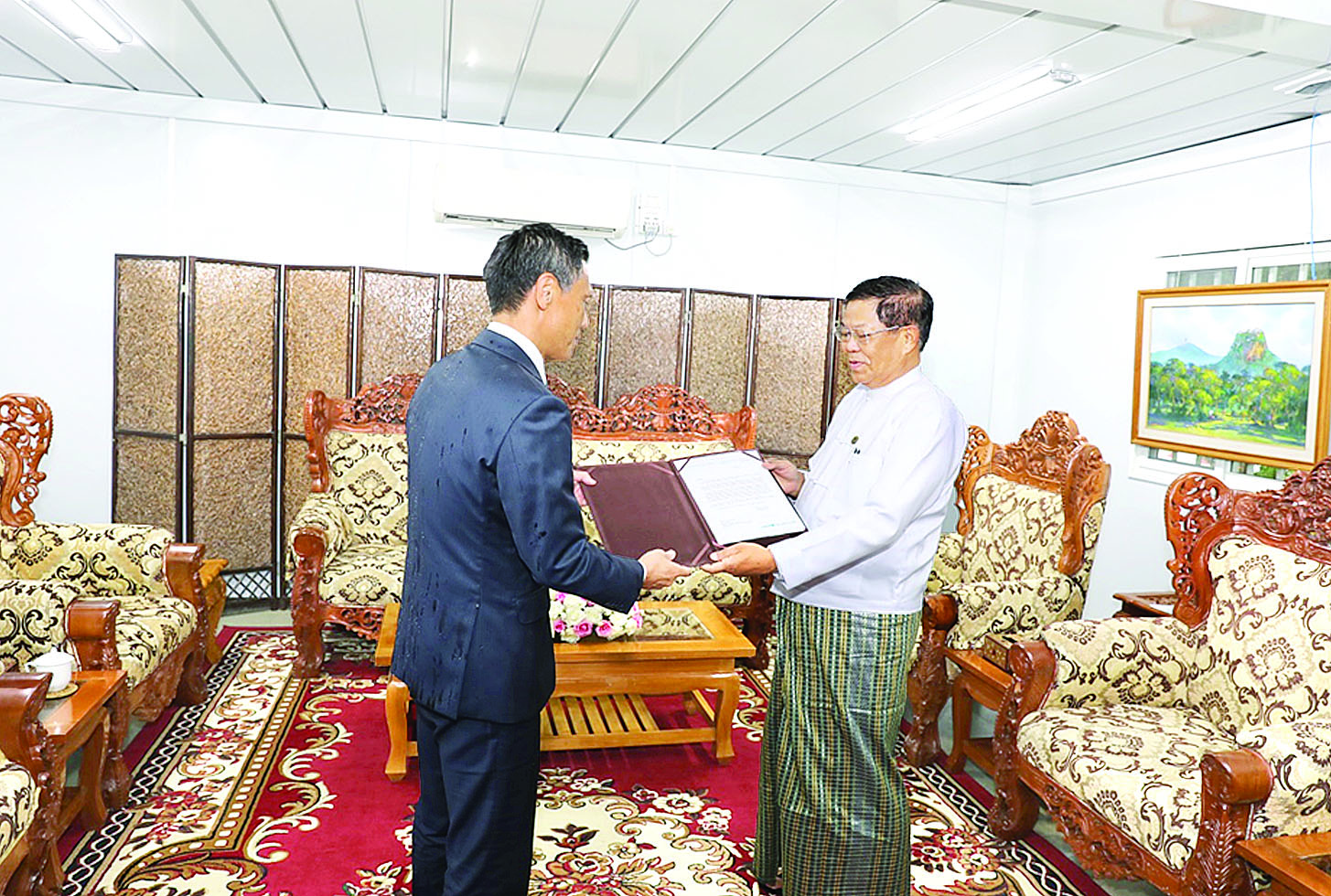 ဒုတိယဝန်ကြီးချုပ်နှင့် နိုင်ငံခြားရေးဝန်ကြီးဌာန ပြည်ထောင်စုဝန်ကြီး ဦးသန်းဆွေထံ ကုလသမဂ္ဂကလေးများရန်ပုံငွေအဖွဲ့ (United Nations Children’s Fund - UNICEF) ၏ မြန်မာနိုင်ငံဆိုင်ရာ ဌာနေကိုယ်စားလှယ်အဖြစ် တာဝန်ထမ်းဆောင်မည့် Mr. Yasumasa Kimura က နေပြည်တော်ရှိ နိုင်ငံခြားရေးဝန်ကြီးဌာန၌ ယနေ့မွန်းလွဲ ၂ နာရီတွင် လာရောက်ဂါရဝပြုတွေ့ဆုံပြီး ၎င်း၏ခန့်အပ်လွှာကို ပေးအပ်သည်။