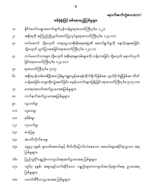 ဝန်ကြီးဌာန ကြေညာချက်များ