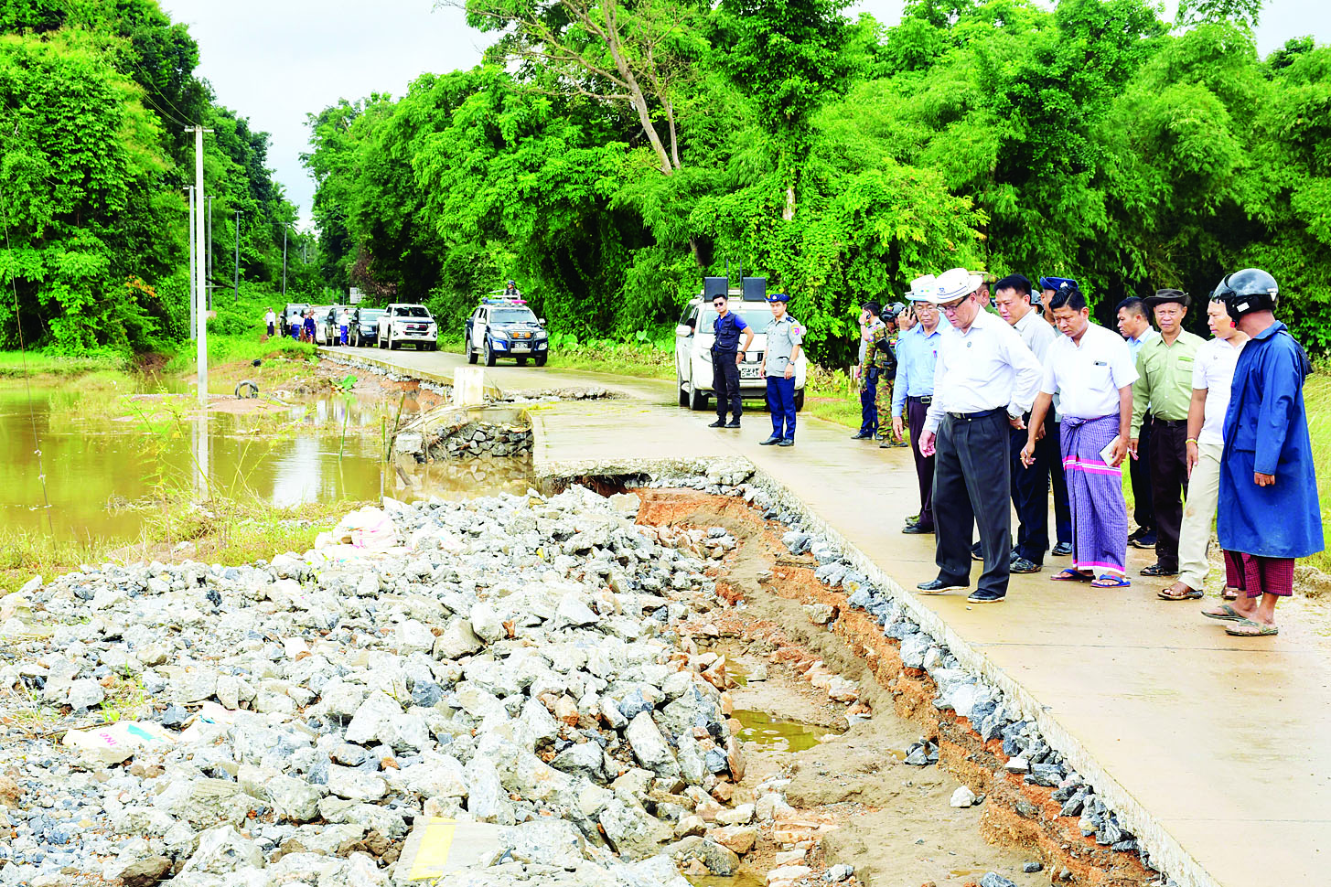ကရင်ပြည်နယ်အတွင်း ရေကြီးရေလျှံမှုများဖြစ်ပွားခဲ့ရာ စိုက်ပျိုးပြီးမိုးစပါး ၁၉၁၅၃၁ ဧကအနက် ၂၉၃၄၉ ဧက ရေဖုံးလွှမ်းခဲ့ကာ ဩဂုတ် ၄ ရက်အထိ ၁၁၄၃၆ ဧက ရေပြန်ပေါ်၍ ၃၄၄၉ ဧက ထိခိုက်ပျက်စီးခဲ့ရာ အချိန်မီပြန်လည်ကုစားထွန်ယက်စိုက်ပျိုးနိုင်ရေးအတွက် ပြည်နယ်ဝန်ကြီးချုပ် ဦးစောမြင့်ဦးနှင့် တာဝန်ရှိသူများသည် ယနေ့နံနက်ပိုင်းက မြေပြင်ကွင်းဆင်းကြည့်ရှုစစ်ဆေးသည်။