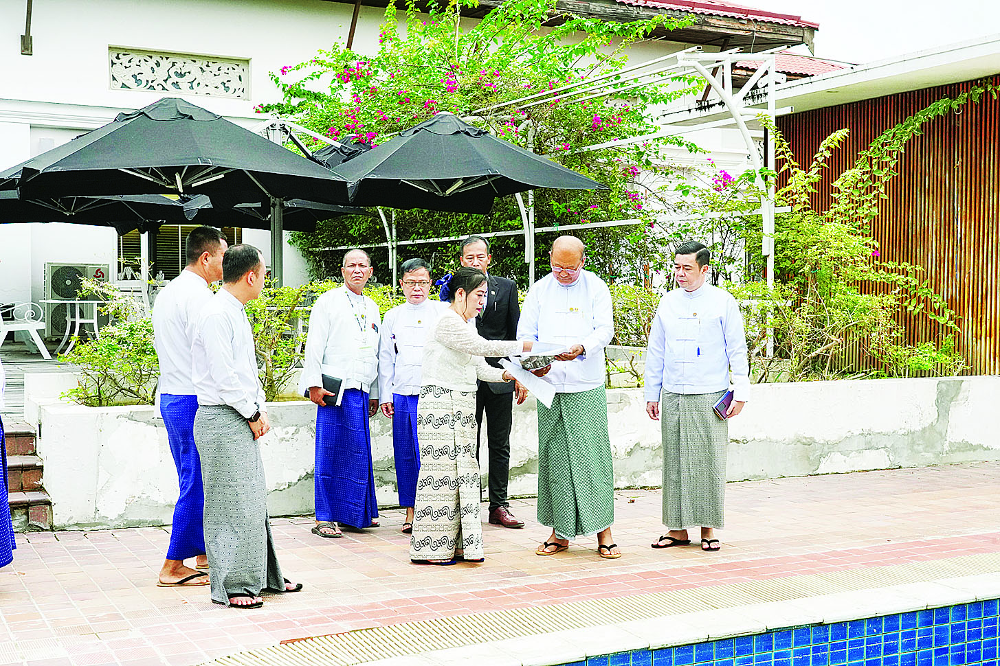 ယင်းနောက် ပြည်ထောင်စုဝန်ကြီးသည် ဟိုတယ်များ၌ ဧည့်သည်များအား ဝန်ဆောင်မှုပေးနေမှု၊ ဖွင့်လှစ်ရန် ပြင်ဆင်ဆောင်ရွက်ထားရှိမှု၊ ဟိုတယ်ဝင်းအတွင်း တစ်နိုင်တစ်ပိုင်စိုက်ပျိုးထားရှိသော အော်ဂဲနစ်စိုက်ခင်းများနှင့် နေရောင်ခြည်စွမ်းအင်သုံး ဆိုလာစနစ်တပ်ဆင်သုံးစွဲနေမှုအခြေအနေတို့ကို ကြည့်ရှုစစ်ဆေးသည်။