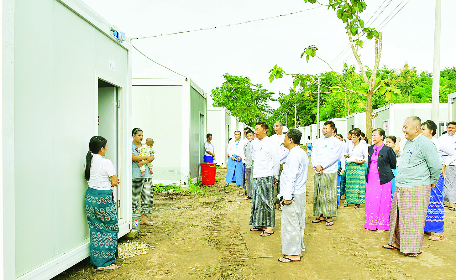 လူမှုဝန်ထမ်း၊ ကယ်ဆယ်ရေးနှင့် ပြန်လည်နေရာ ချထားရေးဝန်ကြီးဌာနအနေဖြင့် ဝန်ထမ်းများ ယာယီနေထိုင်ရန် Container House နှစ်ခန်းတွဲ ၁၆ လုံး၊ တစ်ခန်းတွဲ ၁၀၇ လုံး စုစုပေါင်း ၁၂၃ လုံး တည်ဆောက်ပေးထားကြောင်း သိရသည်။
