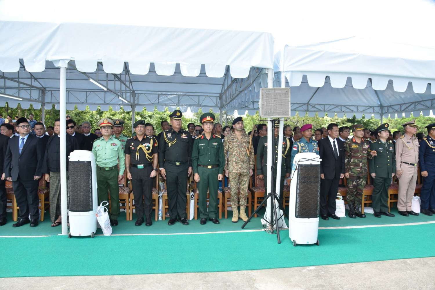 ယင်းနောက် နိုင်ငံတော်လုံခြုံရေးနှင့် အေးချမ်းသာယာရေးကော်မရှင်ဥက္ကဋ္ဌ၊ ကော်မရှင်ဒုတိယဥက္ကဋ္ဌနှင့် ပြည်ထောင်စုအဆင့်ပုဂ္ဂိုလ်များ၊ ကာကွယ်ရေးဦးစီးချုပ်ရုံးမှ အဆင့်မြင့်တပ်မတော်အရာရှိကြီးများက နေရာယူကြပြီး တပ်မတော်ဂုဏ်ပြု သေနတ်ပစ်အဖွဲ့က ဂုဏ်ပြုစစ်ရေးပြအစီအစဉ်အတိုင်းဆောင်ရွက်ကာ သေနတ်မြေစိုက်ဦးခိုက်အလေးပြုကြပြီး သေနတ်မြှောက်အလေးပြုကြသည်။