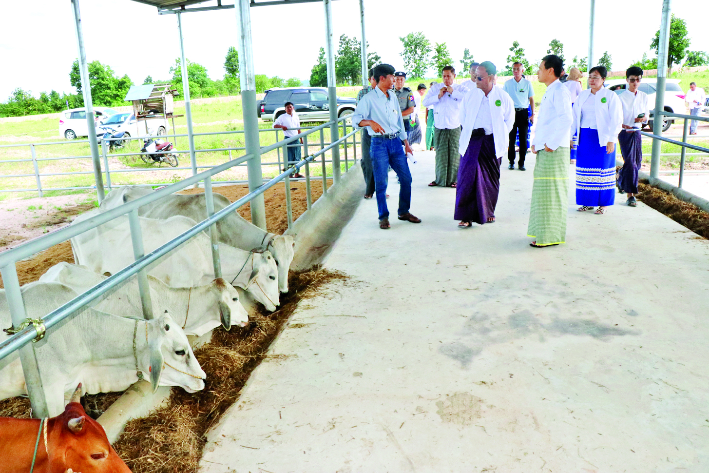 ဦးစွာ ပြည်ထောင်စုဝန်ကြီးသည် လယ်ဝေးမြို့နယ် တလုပ်ပင်ကျေးရွာရှိ ကြံတိုင်းအောင်သမဝါယမအသင်းပိုင်မြေ ၉၇ ဒသမ ၆၅ ဧကပေါ်၌ ဒို့မြန်မာသမဝါယမအသင်းနှင့် ကြံတိုင်းအောင် သမဝါယမအသင်းတို့ အကျိုးတူပူးပေါင်း၍ ဒေသနွားမျိုးကောင်ရေ ၁၅၀ မွေးမြူထားမှုကို ကြည့်ရှု စစ်ဆေးပြီး သမဝါယမအသင်းများအနေဖြင့် ဒေသနွားကောင်ရေ ၅၀၀ မွေးမြူရေးစီမံချက်တွင် ပထမအဆင့် ကောင်ရေ ၁၅၀ မွေးမြူနိုင်ခဲ့ပြီး ကျန်ရှိသော နွားများ သတ်မှတ်ရက်တွင်ရောက်ရှိရေး ချိတ်ဆက်ဆောင်ရွက်ရန်၊ နွားစာရရှိရေး မွန်ဗားဆားမြက်၊ နေပီယာမြက် ၂၇ ဧက စိုက်ပျိုးထားမှုကို ရှင်သန်အောင် ဆောင်ရွက်ရန် မှာကြားသည်။