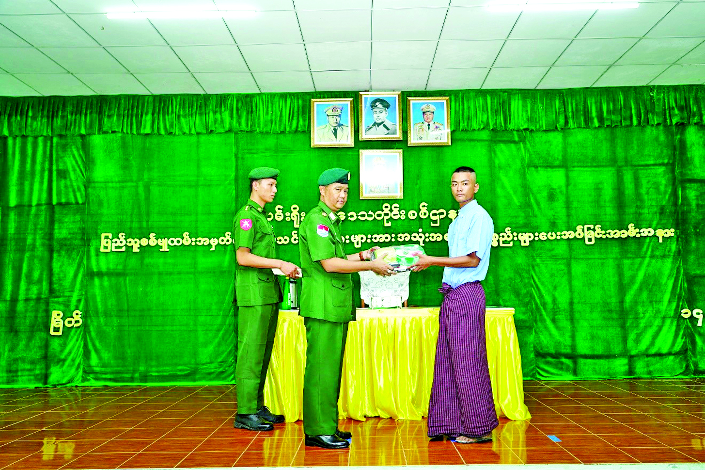 ဦးစွာတိုင်းမှူးက အမှာစကားပြောကြားသည်။ ထို့နောက် ပြည်သူ့စစ်မှုထမ်း သင်တန်းအမှတ်စဉ်(၁၆)သို့ တက်ရောက်မည့် နိုင်ငံ့သားကောင်းရတနာများအား တိုင်းမှူးနှင့် တာဝန်ရှိသူများက အသုံးအဆောင်ပစ္စည်းများ ပေးအပ်ပြီး ရင်းရင်းနှီးနှီးလိုက်လံနှုတ်ဆက်ခဲ့ကြကြောင်း သိရသည်။