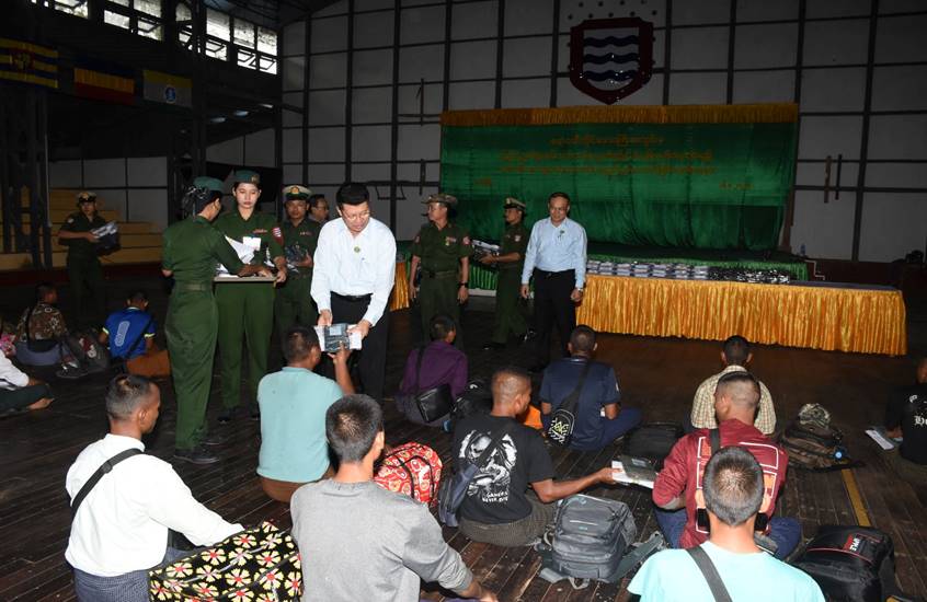 ဧရာဝတီတိုင်းဒေသကြီးအတွင်းမှ ပြည်သူ့စစ်မှုထမ်းသင်တန်း အမှတ်စဉ် (၁၆) သို့ တက်ရောက်မည့် နိုင်ငံ့သားကောင်းရတနာများအား ဧရာဝတီတိုင်းဒေသကြီးဝန်ကြီးချုပ် ဦးတင်မောင်ဝင်းနှင့် အနောက်တောင်တိုင်းစစ်ဌာနချုပ်မှ တာဝန်ရှိသူများက ပုသိမ်တပ်နယ်အားကစားခန်းမ၌ သွားရောက်တွေ့ဆုံသည်။