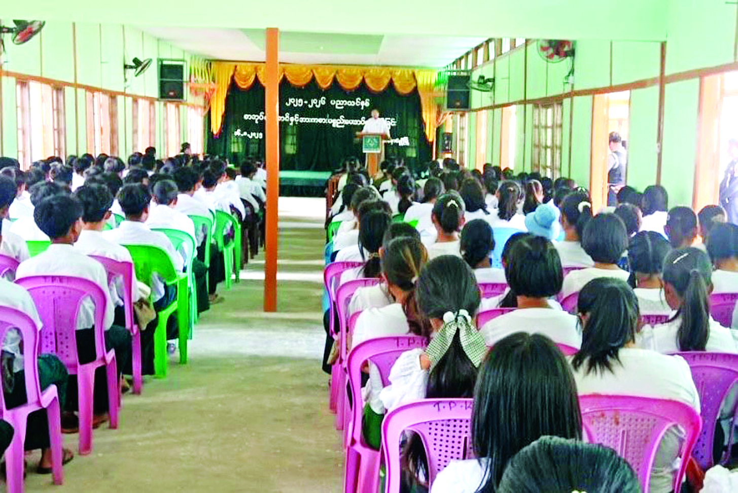 ထို့နောက် ဒုတိယဝန်ကြီးက အခြေခံပညာကျောင်းများအတွက် ပြန်ကြားရေးဝန်ကြီးဌာနမှလှူဒါန်းသော သုတ၊ ရသစာအုပ်များနှင့် အားကစားနှင့် လူငယ်ရေးရာဝန်ကြီးဌာနမှပေးပို့သော အားကစားဆိုင်ရာပစ္စည်းများ လွှဲပြောင်းပေးအပ်ရာ မြို့နယ်ပညာရေးမှူး ဒေါ်အေးသင်းက လက်ခံရယူပြီး ကျေးဇူးတင်စကားပြောကြားသည်။