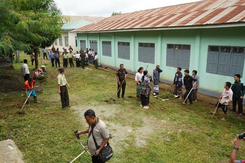 ၂၀၂၅-၂၀၂၆ ပညာသင်နှစ်တွင် ကျောင်းသား၊ ကျောင်းသူများ အဆင်ပြေချောမွေ့စွာ ပညာသင်ကြားနိုင်ရေးနှင့် စာသင်ကျောင်းများ ဥပဓိရုပ်ကောင်းမွန်စေရေးအတွက် တိုင်းဒေသကြီးနှင့် ပြည်နယ်အသီးသီးရှိ အခြေခံပညာကျောင်းများ၌ ကျောင်းပတ်ဝန်းကျင်သန့်ရှင်းသာယာလှပရေးအတွက် နယ်မြေခံတပ်မတော်သားများ၊ ဌာနဆိုင်ရာဝန်ထမ်းများ၊ လူမှုရေးအသင်းအဖွဲ့များနှင့် ဒေသခံပြည်သူများက စုပေါင်းသန့်ရှင်းရေးလုပ်ငန်းများ ဆောင်ရွက်လျက်ရှိသည်။