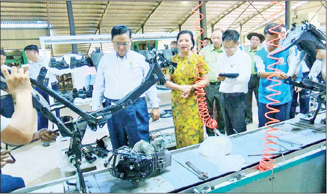 မွန်းလွဲပိုင်တွင် ပြည်ထောင်စုဝန်ကြီးနှင့် တာဝန်ရှိသူများသည် စက်မှုဇုန်အတွင်းရှိ Alpha Vina ကွန်ကရစ်တိုင်များထုတ်လုပ်လျက်ရှိသည့် လုပ်ငန်းစဉ်အဆင့်ဆင့်တို့ကိုလည်းကောင်း၊ ဝင်း-သမစိတ္တ ဆီစက်တွင် စားသုံးဆီများ ကြိတ်ခွဲထုတ်လုပ်နေမှုအခြေအနေကိုလည်းကောင်း ၊ King Golden Dragon Co., Ltd. ၏ STAR မော်တော်ဆိုင်ကယ်များအား SKD စနစ်ဖြင့် တပ်ဆင်ထုတ်လုပ်လျက်ရှိသည့် လုပ်ငန်းစဉ်အဆင့်ဆင့် တို့ကိုလည်းကောင်း လှည့်လည်အားပေးကြည့်ရှုခဲ့ကြကြောင်း သိရသည်။