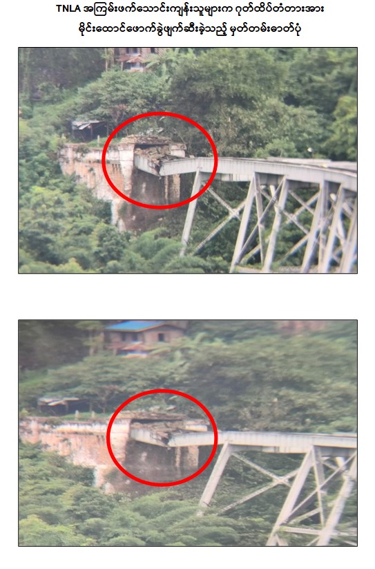 TNLA အကြမ်းဖက်သောင်းကျန်းသူများအနေဖြင့် တပ်မတော်၏ စနစ်တကျဖြင့် အဆင့်ဆင့်ခြေကုပ်ယူ ထိုးစစ်ဆင်မှုများကို ဆက်လက်ခုခံနိုင်ခြင်းမရှိဘဲ ကစဉ့်ကလျားဖြင့် ဖရိုဖရဲဆုတ်ခွာထွက်ပြေးစဉ် စစ်ရေးနှင့် မသက်ဆိုင်သည့် မြန်မာနိုင်ငံ၏ အထင်ကရ အမှတ်အသားတစ်ခုဖြစ်သည့် ဂုတ်ထိပ်တံတားအား အသိတရားကင်းမဲ့စွာဖြင့် မိုင်းထောင်ဖောက်ခွဲဖျက်ဆီးခဲ့ကြသည်။