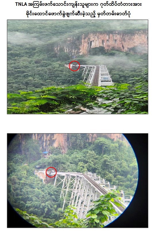 ထိုသို့ TNLA လက်နက်ကိုင်အကြမ်းဖက် သောင်းကျန်းသူများအနေဖြင့် ဆုတ်ခွာထွက်ပြေးစဉ် ယနေ့နံနက်ပိုင်းတွင် မြန်မာနိုင်ငံ၏ အထင်ကရအမှတ်အသားနှင့် ကမ္ဘာ့အံ့ဖွယ်စာရင်းဝင်ဂုတ်ထိပ်တံတားအား ယုတ်မာရိုင်းစိုင်းစွာ မိုင်းထောင်ဖောက်ခွဲဖျက်ဆီးခဲ့သောကြောင့် ကျောက်မဲမြို့ ဘက်အခြမ်းတံတားတိုင်အမှတ် (P-16) နှင့် ကမ်းကပ်ခုံ (AB - 2) နေရာတို့အကြား ပေ ၆၀ အရှည်ရှိ တံတားသံပေါင်နေရာနှင့် တံတား၏ ကမ်းကပ်ခုံ (AB - 2) တို့ ပျက်စီးခဲ့ရသည်။