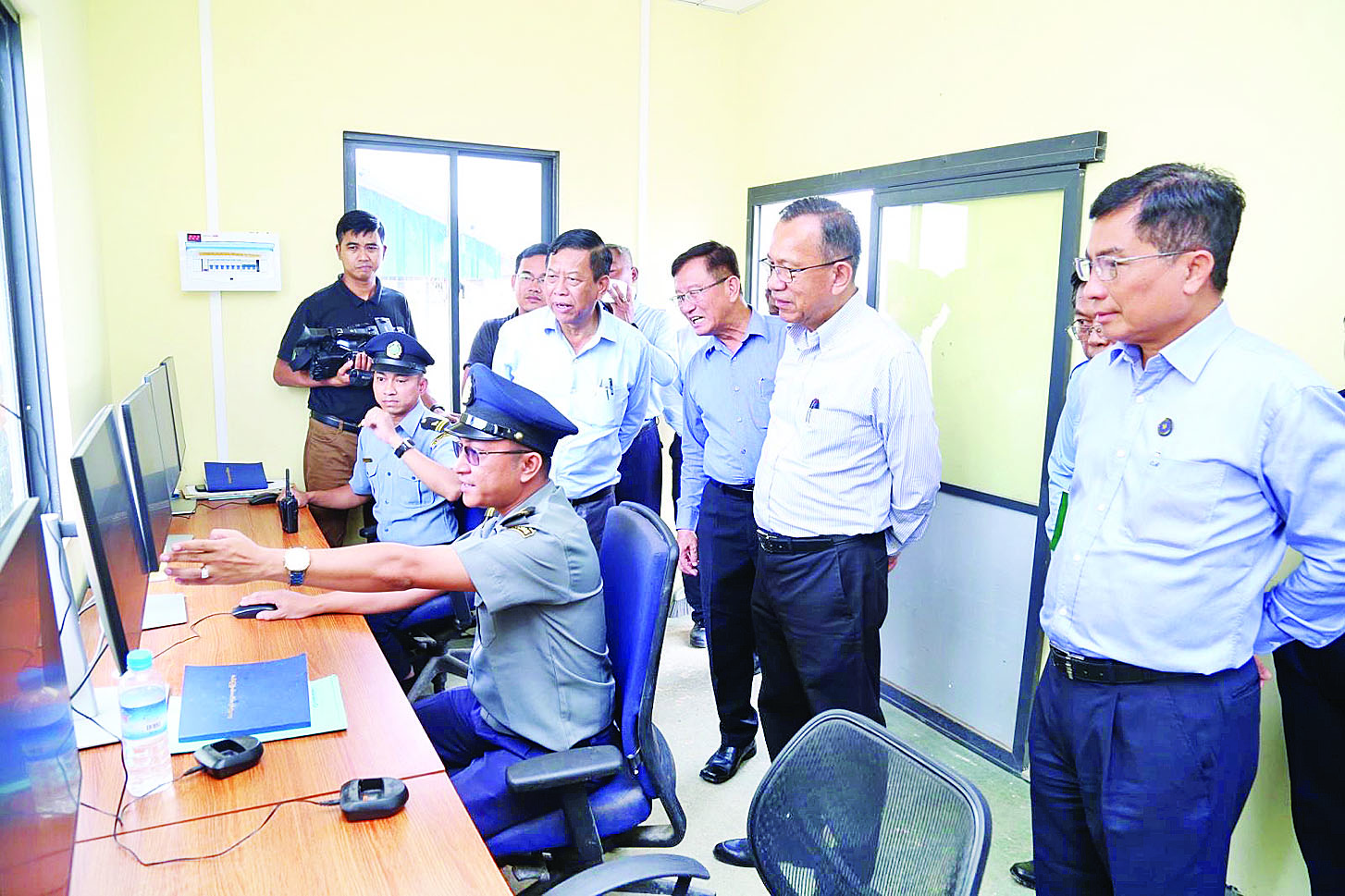 ဘဏ္ဍာရေးနှင့် အခွန်ဝန်ကြီးဌာန ပြည်ထောင်စုဝန်ကြီး ဒေါက်တာကံဇော်နှင့် စီးပွားရေးနှင့် ကူးသန်း ရောင်းဝယ်ရေးဝန်ကြီးဌာန ပြည်ထောင်စုဝန်ကြီး ဦးချစ်ဆွေ၊ ဘဏ္ဍာရေးနှင့် အခွန်ဝန်ကြီးဌာန ဒုတိယဝန်ကြီးနှင့် ပဲခူးတိုင်းဒေသကြီး လုံခြုံရေးနှင့် နယ်စပ်ရေးရာဝန်ကြီးတို့သည် တာဝန်ရှိသူများနှင့်အတူ ယနေ့နံနက်ပိုင်းက မြဝတီ-ရန်ကုန် ကုန်သွယ်မှုလမ်းကြောင်းပေါ်ရှိ ပဲခူးတိုင်းဒေသကြီး ဝေါမြို့နယ် ညောင်ခါးရှည် အမြဲတမ်းစစ်ဆေးရေးစခန်း၌ အကောက်ခွန်ကုန်ပစ္စည်းစစ်ဆေးခြင်း လုပ်ငန်းဆောင်ရွက်နေမှုများကို သွားရောက်ကြည့်ရှု စစ်ဆေးသည်။