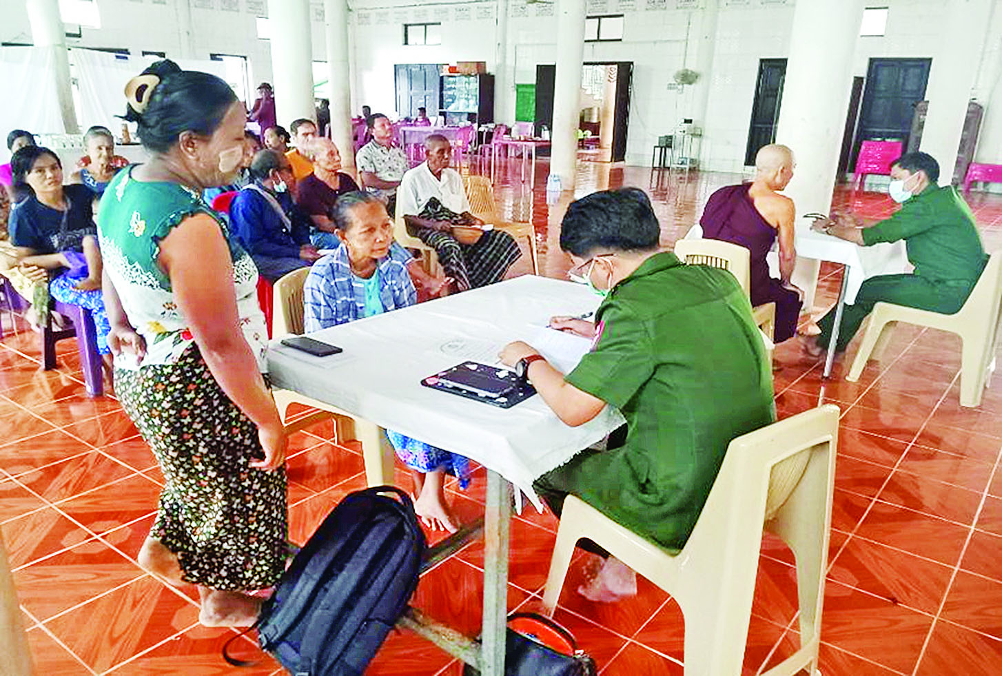 ကချင်ပြည်နယ် မြစ်ကြီးနားမြို့ပေါ် ကျောင်းတိုက်များမှ သံဃာတော်များနှင့် သာသနာနွယ်ဝင်သီလရှင်များအား ယနေ့နံနက်ပိုင်းတွင် မြောက်ပိုင်းတိုင်းစစ်ဌာနချုပ် နယ်လှည့်ဆေးကုသရေးအဖွဲ့က မိုးကုတ်ဓမ္မရိပ်သာကျောင်းတိုက်၌ ကျန်းမာရေးစောင့်ရှောက်မှုလုပ်ငန်းများ ဆောင်ရွက်ပေးသည်။