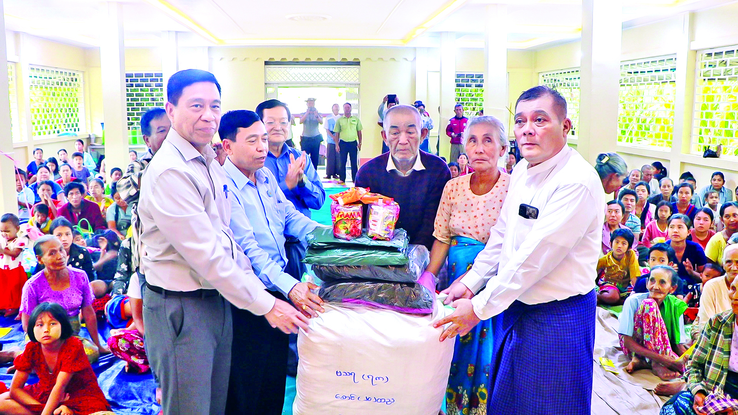 ထိုမှတစ်ဆင့် ဇေယျာသီရိမြို့နယ် ကျည်တောင်ကျေးရွာ ကိုးခမ်းကြီးဘုန်းကြီးကျောင်း ရေဘေးရှောင်စုရပ်သို့ သွားရောက်၍ ဆန်ရိက္ခာဖိုး၊ စောင်နှင့် သောက်ရေသန့်များကို ထောက်ပံ့ပေးအပ်ပြီး ရေဘေးသင့်ပြည်သူများအား တွေ့ဆုံအားပေးစကားပြောကြားသည်။