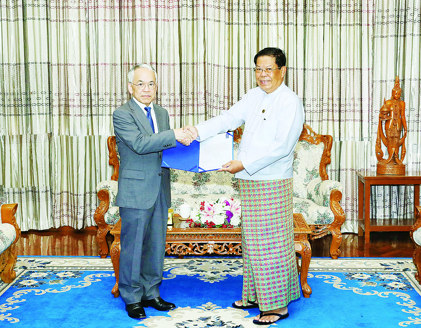 နိုင်ငံခြားရေးဝန်ကြီးဌာန ပြည်ထောင်စုဝန်ကြီး ဦးသန်းဆွေထံ ကုလသမဂ္ဂဖွံ့ဖြိုးမှုအစီအစဉ် (United Nations Development Programme– UNDP) ၏ မြန်မာနိုင်ငံဆိုင်ရာဌာနေကိုယ်စားလှယ်အဖြစ် တာဝန်ထမ်းဆောင်မည့် Mr. Norimasa Shimomura က ၎င်း၏ခန့်အပ်လွှာကို ယနေ့မွန်းလွဲ ၁ နာရီတွင် နေပြည်တော်ရှိ နိုင်ငံခြားရေးဝန်ကြီးဌာန၌ လာရောက်ပေးအပ်သည်။
