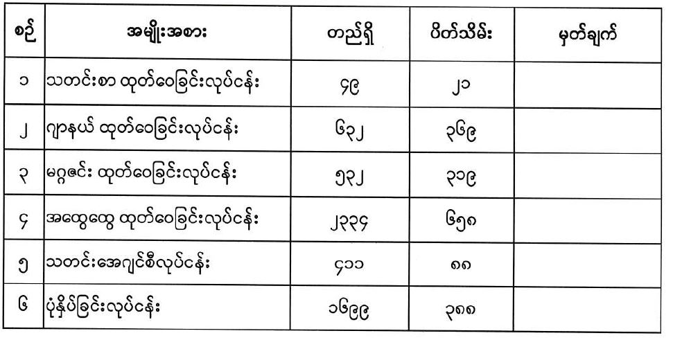 ပုံနှိပ်ခြင်းလုပ်ငန်း၊ ထုတ်ဝေခြင်းလုပ်ငန်း(သတင်းစာ၊ ဂျာနယ်၊ မဂ္ဂဇင်း၊ အထွေထွေ) သတင်းအေဂျင်စီလုပ်ငန်းများ ခွင့်ပြုထားရှိမှုနှင့် ထုတ်ဝေမှုအခြေအနေ (၃၁-၈-၂၀၂၅) 09/05/2025