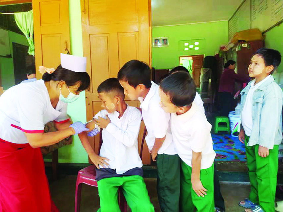 အလားတူ ကာကွယ်ဆေးထိုးနှံတိုက်ကျွေးခြင်းလုပ်ငန်းအား ပြန်လည်အားဖြည့်ဆောင်ရွက်လျက်ရှိပြီး အသက်ငါးနှစ်အောက်ကလေးငယ်များအား ငါးမျိုးစပ်ကာကွယ်ဆေး၊ ဝက်သက်-ဂျိုက်သိုးရောဂါ ကာကွယ်ဆေး၊ ဂျပန်ဦးနှောက်ရောင်ရောဂါကာကွယ်ဆေး၊ ပိုလီယိုရောဂါကာကွယ်ဆေး (အစက်ချဆေး၊ ထိုးဆေး) တို့ကိုလည်းကောင်း၊ အသက်ငါးနှစ်မှ ခုနစ်နှစ်အရွယ် ကလေးများအား ဆုံဆို့-မေးခိုင်ရောဂါ ကာကွယ်ဆေး၊ ဝက်သက်-ဂျိုက်သိုးရောဂါ ကာကွယ်ဆေး၊ ဂျပန်ဦးနှောက်ရောင်ရောဂါကာကွယ်ဆေး၊ ပိုလီယိုရောဂါကာကွယ်ဆေး (အစက်ချဆေး)တို့ကိုလည်းကောင်း၊ အသက်ခုနစ်နှစ်မှ ၁၅ နှစ်အရွယ် ကလေးများအား မေးခိုင်-ဆုံဆို့ ရောဂါကာကွယ်ဆေး၊ ဝက်သက်-ဂျိုက်သိုးရောဂါ ကာကွယ်ဆေး၊ ဂျပန် ဦးနှောက်ရောင်ရောဂါကာကွယ်ဆေးတို့ကိုလည်းကောင်း ထိုးနှံတိုက်ကျွေးပေးလျက်ရှိရာ ၂၀၂၅ ခုနှစ် ဇူလိုင် ၂၅ ရက်မှ စက်တင်ဘာ ၆ ရက်အထိ ကလေး စုစုပေါင်း ၁၂၀၉၇ ဦးကို လိုအပ်သော ကာကွယ်ဆေးများ ထိုးနှံတိုက်ကျွေးပေးနိုင်ခဲ့သည်။