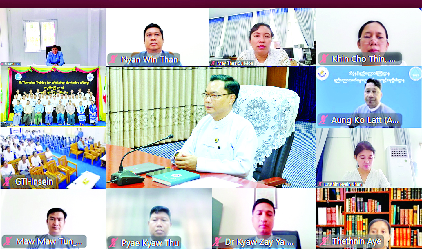 ရန်ကုန်မြို့ရှိ အစိုးရစက်မှု လက်မှုသိပ္ပံ (အင်းစိန်)တွင် ပုဂ္ဂလိက EV အဖွဲ့အစည်းများမှ စက်ပြင်ဆရာများအတွက် EV Mechanics သင်တန်း (၂/၂၀၂၅) ဖွင့်ပွဲကို စက်တင်ဘာ ၈ ရက်နံနက်ပိုင်းကကျင်းပရာ လျှပ်စစ်သုံး ယာဉ်နှင့် ဆက်စပ်ပစ္စည်းများ သုတေသနဖွံ့ဖြိုးရေးနှင့် နည်းပညာပြန့်ပွားရေး လုပ်ငန်းကော်မတီဥက္ကဋ္ဌ သိပ္ပံနှင့်နည်းပညာဝန်ကြီးဌာန ဒုတိယဝန်ကြီး ဒေါက်တာအောင်ဇေယျက ဗွီဒီယိုကွန်ဖရင့်ဖြင့် တက်ရောက်ပြီး နည်းပညာ၊ သက်မွေးပညာနှင့် လေ့ကျင့်ရေးဦးစီးဌာန ညွှန်ကြားရေးမှူးချုပ်၊ ဒုတိယညွှန်ကြားရေးမှူးချုပ်များနှင့် ညွှန်ကြားရေးမှူးများ၊ ကျောင်းအုပ်ကြီးများ၊ သင်တန်း ဆရာများနှင့် သင်တန်းသားများ တက်ရောက်ကြသည်။