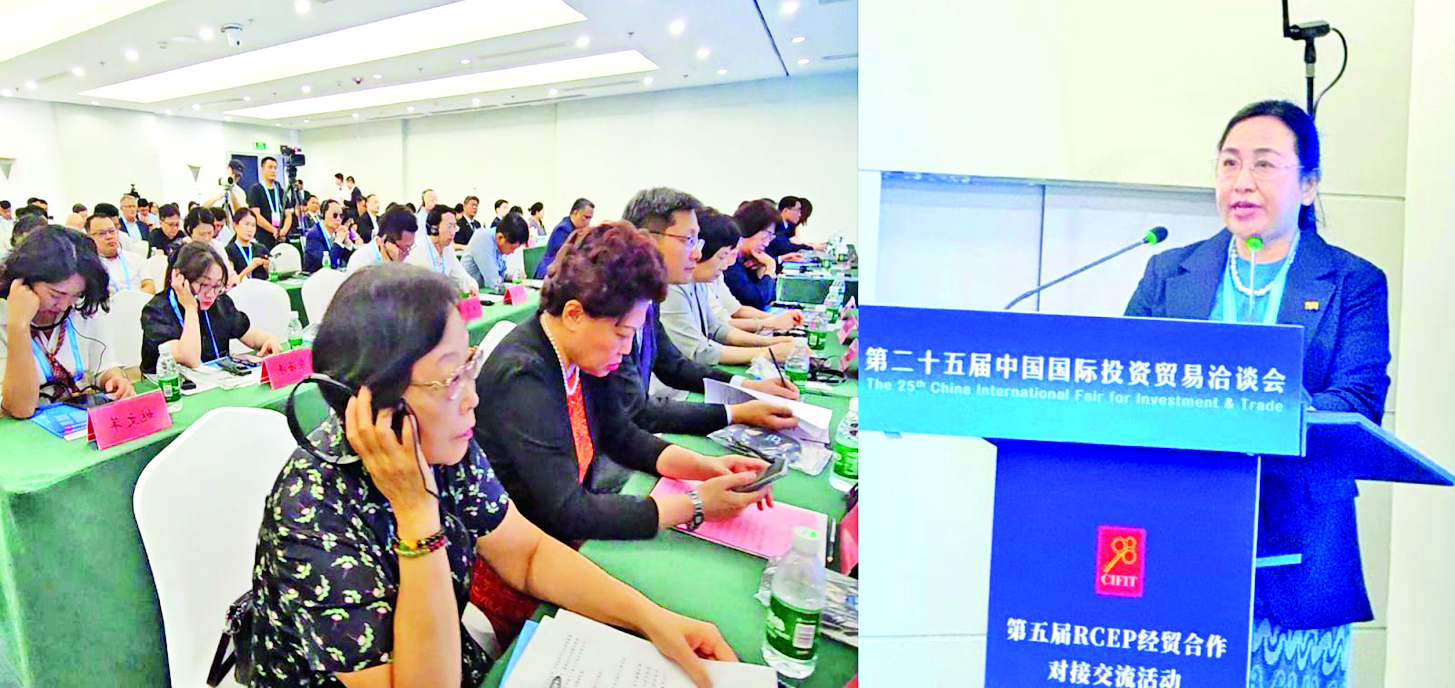 ထို့နောက် (၅)ကြိမ်မြောက် ဒေသတွင်း ဘက်စုံစီးပွားရေးပူးပေါင်းဆောင်ရွက်မှု သဘောတူစာချုပ် (RCEP) အဖွဲ့ဝင်နိုင်ငံများ၏ စီးပွားရေးနှင့် ကုန်သွယ်ရေး ပူးပေါင်းဆောင်ရွက်မှု အခမ်းအနားသို့ တရုတ်၊ လာအို၊ စင်ကာပူ၊ ဂျပန်၊ ကိုရီးယားနှင့် မလေးရှားနိုင်ငံတို့မှ ကိုယ်စားလှယ်များနှင့်အတူ တက်ရောက်ကြသည်။